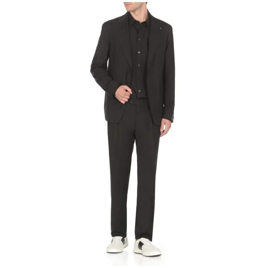 Ontdek de elegantie van het Tagliatore Virgin Wool Tweedelig Pak, ontworpen voor wie waarde hecht aan fijne tailoring en een klassieke stijl. Dit pak heeft een peak lapel, versierd met de iconische pin, wat een verfijnde touch geeft aan elke formele gelegenheid. Belangrijkste kenmerken: Zwart | Virgin Wool | Peak lapel met iconische pin | Lange mouwen met knopen aan de zoom | Borstzak aan de voorkant | Twee paspelzakken aan de voorkant | Sluiting met knopen aan de voorkant | Riemlussen | Twee paspelzakken aan de zijkant | Twee paspelzakken aan de achterkant | Sluiting met knoop en ritssluiting aan de voorkant | Afmetingen en pasvorm: Het model is 190 cm lang en draagt maat 50 | Samenstelling en onderhoud: 100% Virgin Wool | Alleen chemisch reinigen