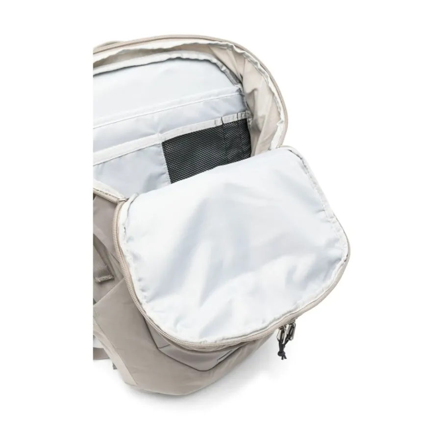 The North Face lichtgrijze rugzak voor mannen met ritssluiting rondom, verstelbare schouderbanden en voorvak met rits. Afmetingen: diepte 10,0 cm, handvat 5,0 cm, hoogte 47,0 cm, breedte 35,0 cm.