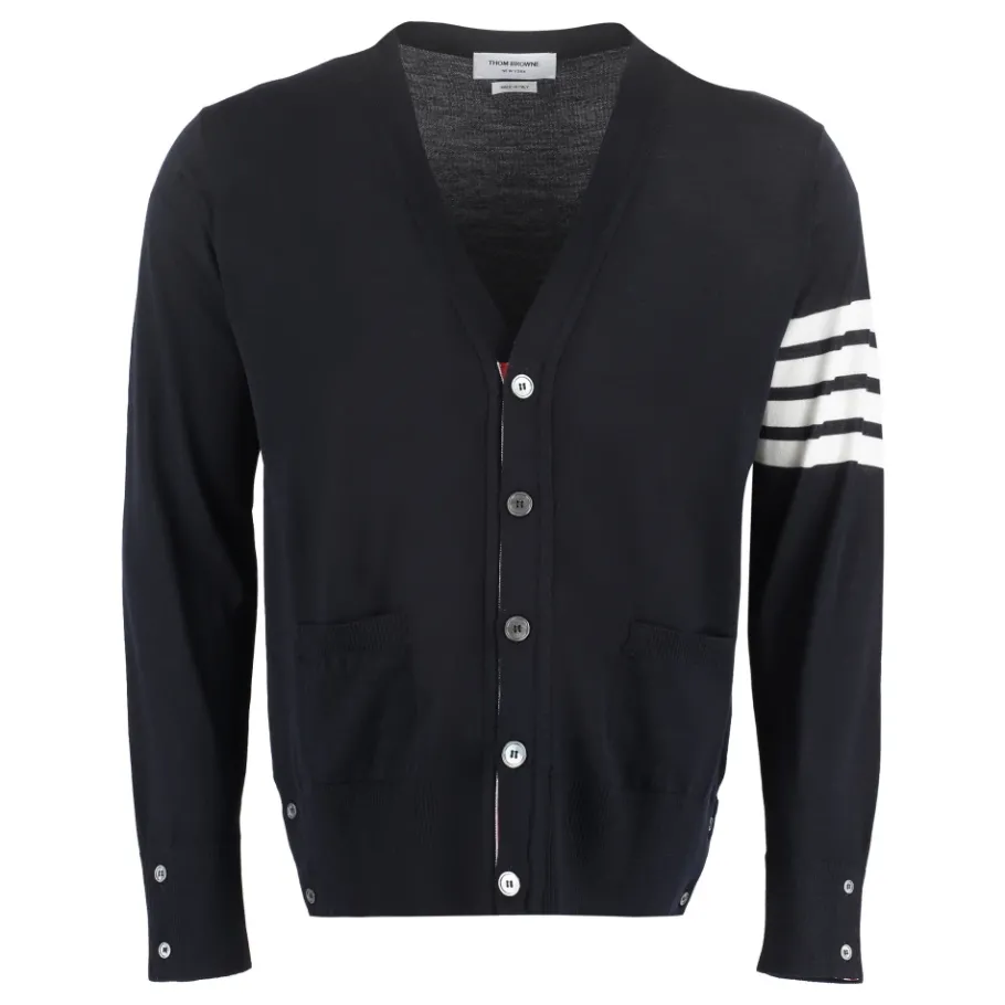 Thom Browne Merino Wool 4-Bar Classic V-Neck Cardigan-Heren Truien & Vesten