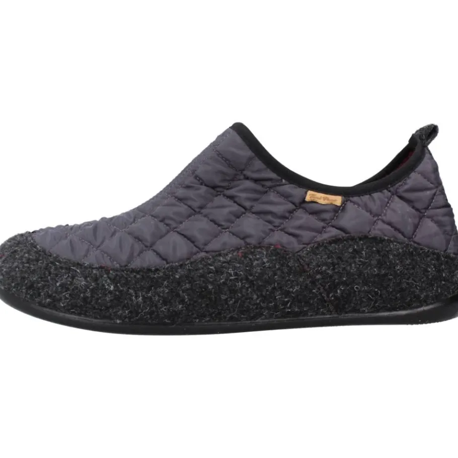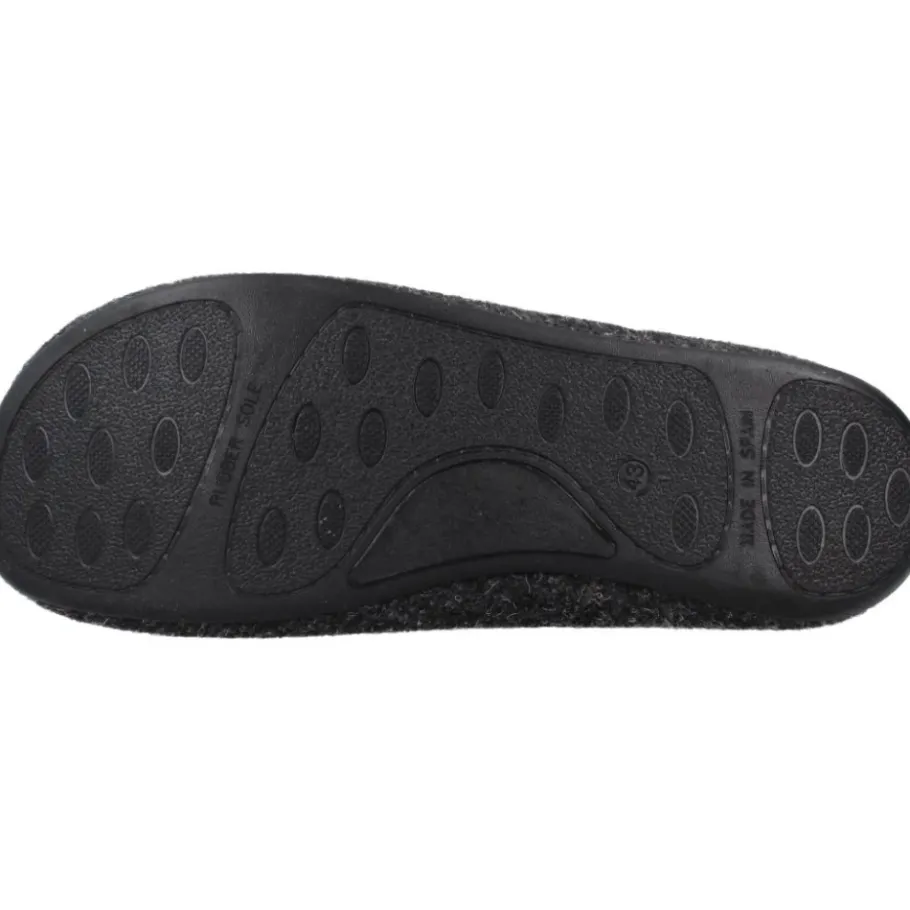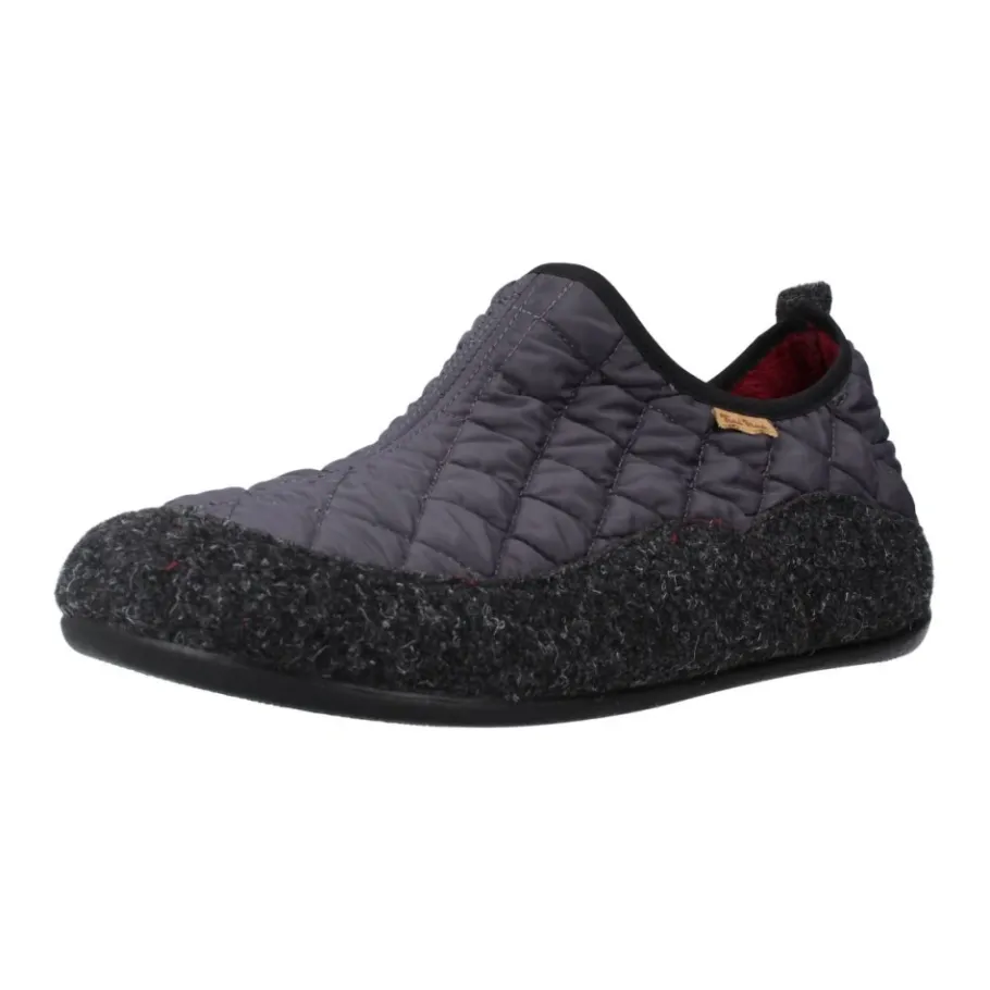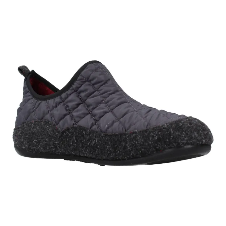 De Toni Pons Nil-Um Pantoffel biedt warm, slip-on comfort voor thuisgebruik met een gewatteerd vilten bovenwerk en een flexibele, anti-slip rubberen zool. Belangrijkste kenmerken: Grijs | Vilt | Flexibele, lichtgewicht zool | Anti-slip rubberen buitenzool | Warm gevoerde binnenkant | Slip-on constructie | Gewatteerde binnenkant voor extra warmte | Gewatteerd stoffen bovenwerk | Ronde neus | Laag silhouet | Gemêleerde afwerking | Afmetingen en pasvorm: Normale tot brede pasvorm; bij twijfel tussen twee maten, kies de grootste maat. | Verkrijgbaar in EU-maten 39-50. | Samenstelling en verzorging: Bovenwerk: Textiel (vilt en gewatteerde stof) | Voering: Textiel | Binnenzool: Textiel | Zool: Rubber