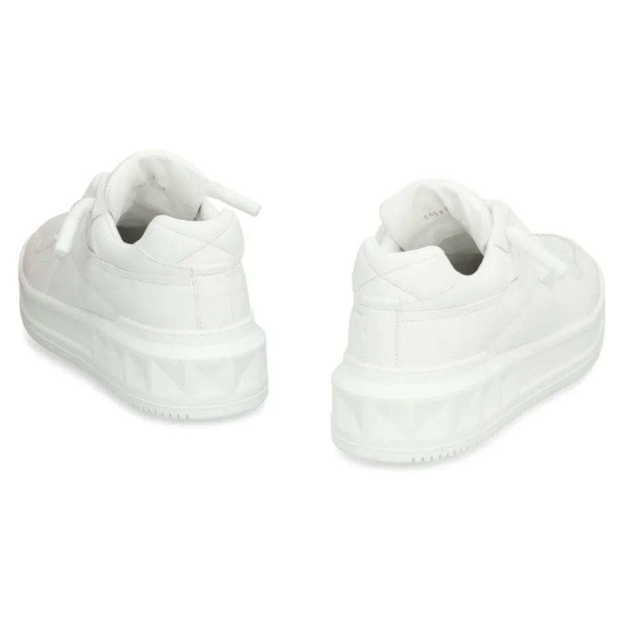 De Valentino Garavani One Stud XL Low-Top Sneaker combineert glad kalfsleer met de kenmerkende Maxi-stud detail van het label voor een gedurfde, alledaagse sneaker. De flatform rubberen zool en de ronde neus zorgen voor comfort en een eigentijds profiel. Belangrijkste kenmerken: Wit | Kalfsleer | Vetersluiting | Rubberen flatform zool | Maxi-stud detail aan de voorkant | Ronde neus | Zeefdruklogo op de tong en hiel | Semi-matte afwerking op studs | Samenstelling & verzorging: 100% Kalf