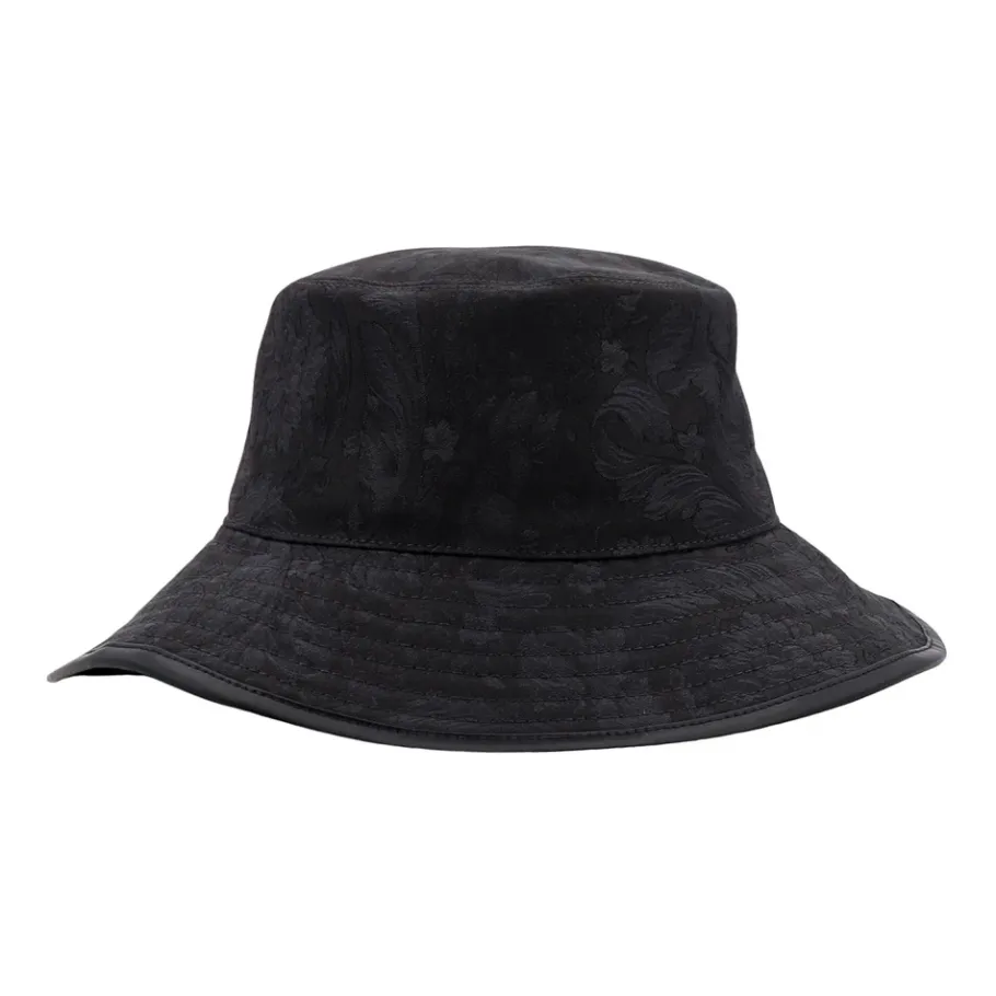 Verrijk je stijl met de Versace Barok Patroon Zwarte Katoenen Hoed, met een all-over barokmotief en gestikte profielen. Deze hoed is gemaakt in Italië en combineert luxe en vakmanschap. Belangrijkste kenmerken: Zwart | Katoen | All-over barokmotief | Gestikte profielen | Samenstelling en onderhoud: 100% Katoen