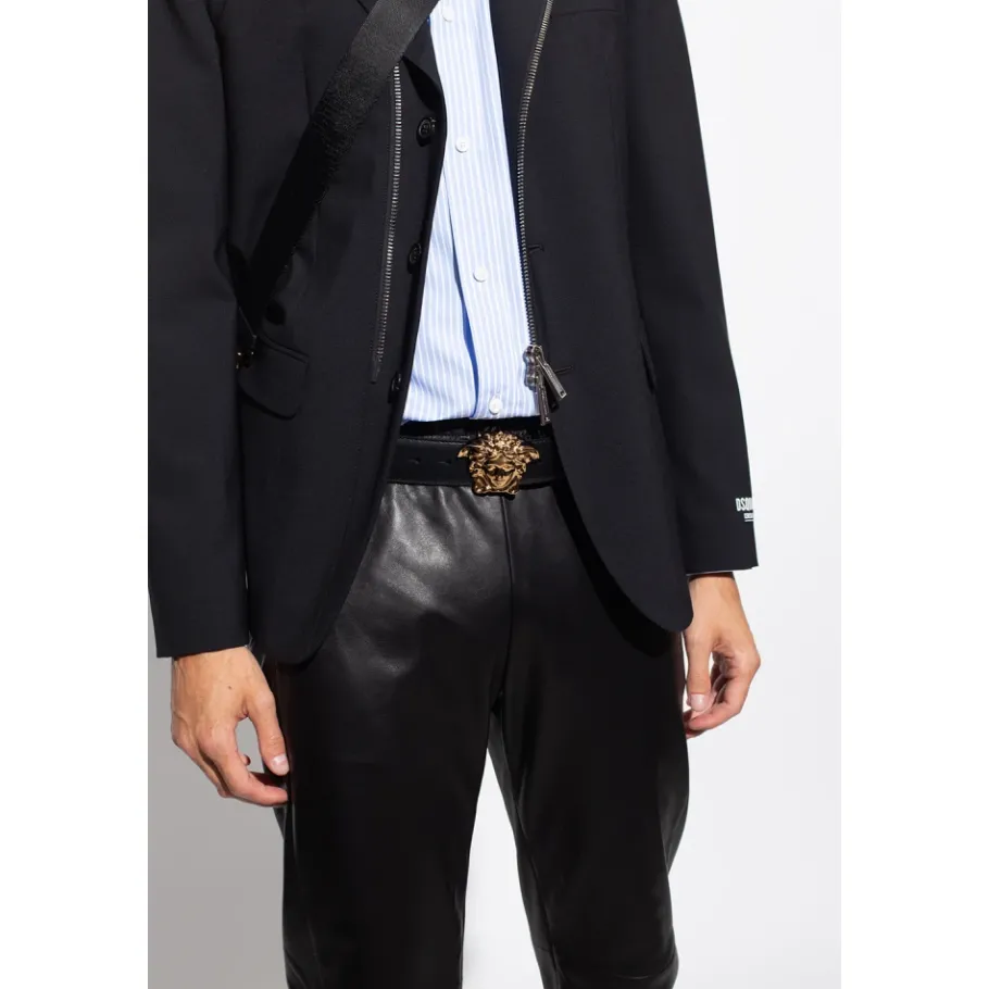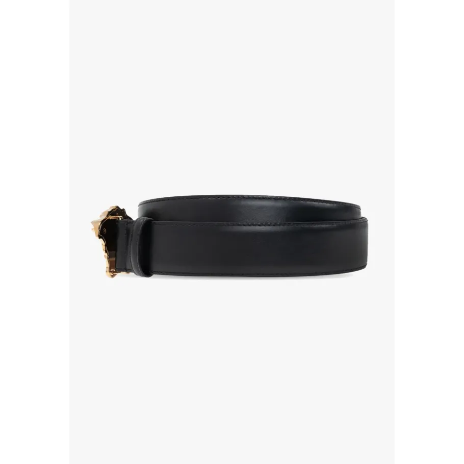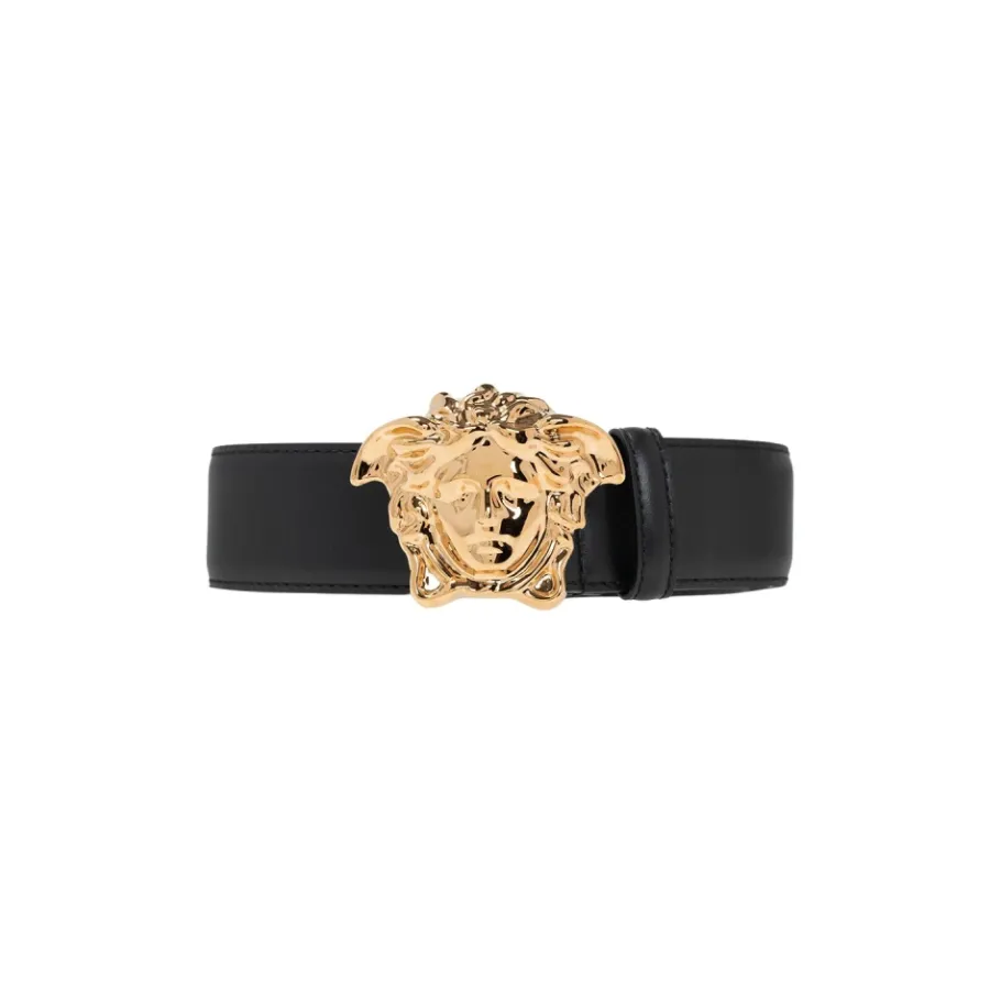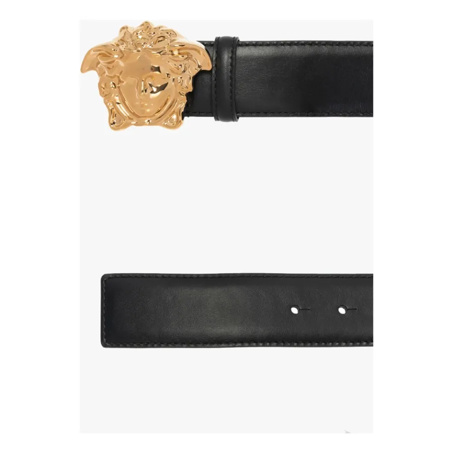 Verrijk uw accessoirecollectie met deze leren riem met de iconische Medusa-kop gesp. Perfect om een vleugje luxe toe te voegen aan elke outfit. Belangrijkste kenmerken: Zwart | Kalfsleer | Verstelbare pasvorm | Goudkleurig hardware | Tonen stiksels | Afmetingen en pasvorm: Regular fit | Samenstelling en onderhoud: 100% kalfsleer | Afnemen met een vochtige doek.