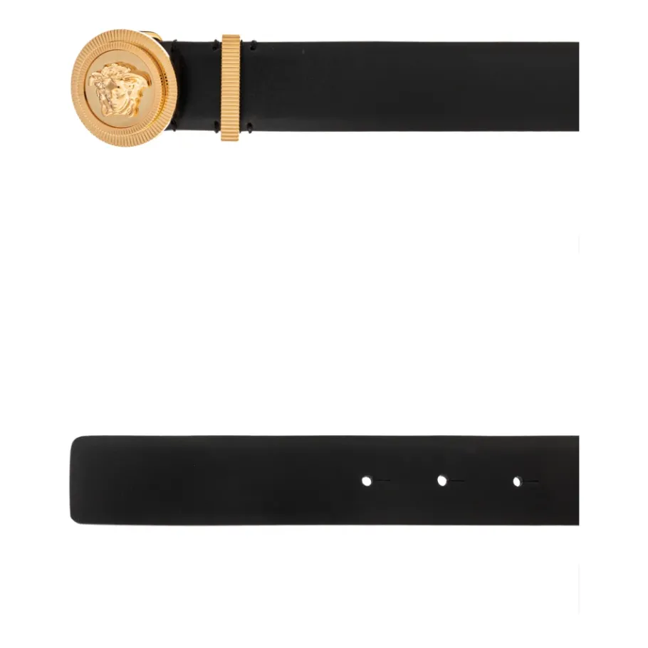De leren riem van VERSACE belichaamt verfijnde mannelijkheid, waar de klassieke rechthoekige vorm harmonieert met het zwarte, gladde, exclusieve leer. Het zorgvuldig geselecteerde materiaal benadrukt het prestigieuze karakter van het accessoire en maakt het een onmisbaar element van een elegante garderobe. Het topdetail is de RONDE, GOUDEN GESP, versierd met een verhoogd Medusa-hoofdmotief en een gegroefde ring, die dient als een iconisch symbool van het modehuis Versace. Dit is een kenmerk van luxe, dat de kracht en individualiteit van de drager uitdrukt. De minimalistische afwerking en perfecte verhoudingen getuigen van een passie voor detail en het vakmanschap van Italiaanse ambachtslieden waar Versace om bekend staat. WAAROM IS DIT PRODUCT HET WAARD OM TE KOPEN? * Gemaakt van zorgvuldig geselecteerd, echt leer * Exclusieve, kenmerkende gesp met het Medusa-motief * Tijdloos ontwerp en elegante afwerking * Een symbool van prestige en uniciteit ondertekend door Versace * Een uitzonderlijk accessoire dat de individuele stijl benadrukt breedte: 3cm