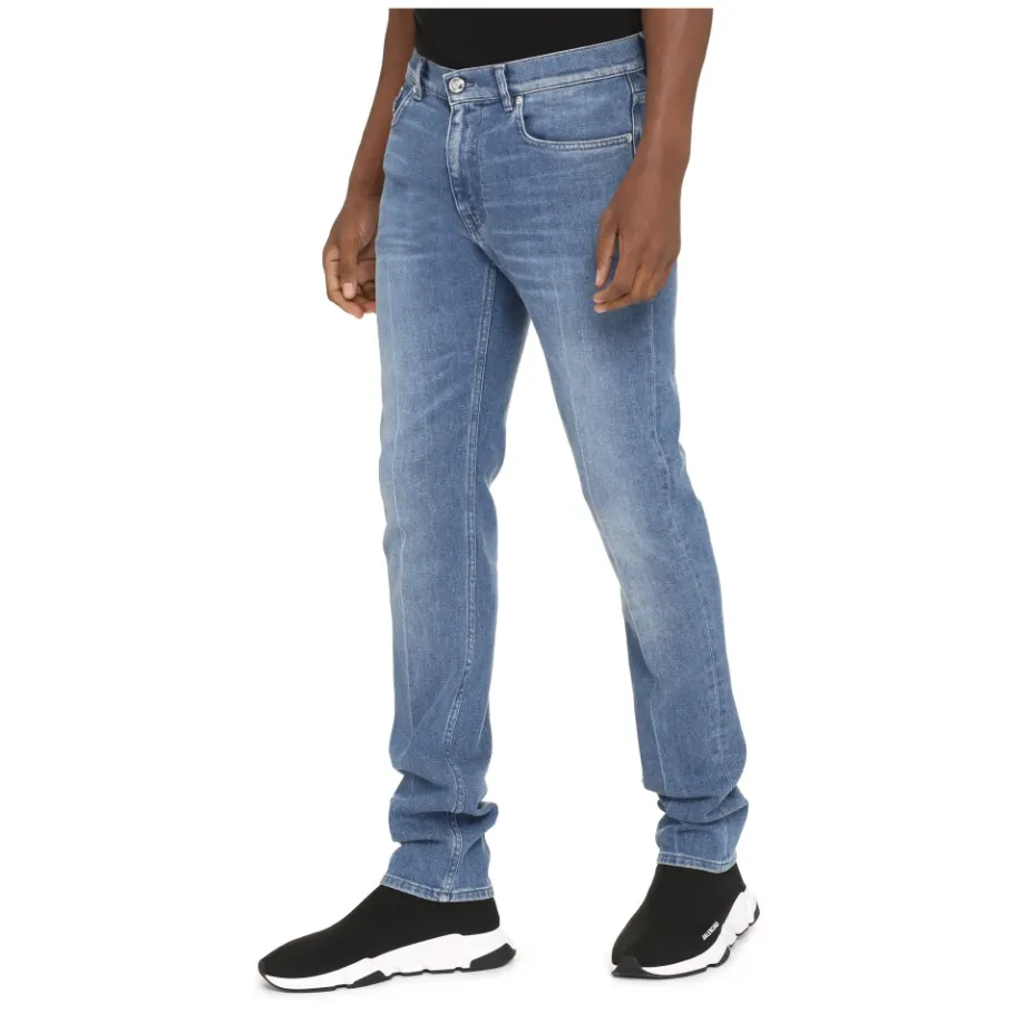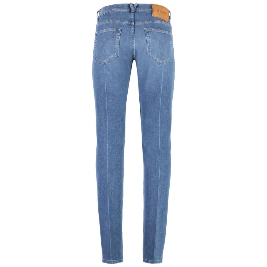 Versace slim-fit jeans vernieuwen de klassieke denim met vijf zakken met Medusa-hardware en een leren logopatch aan de achterkant, voor een verfijnd slank silhouet voor een stijlvolle alledaagse look. Belangrijkste kenmerken: Blauw | Denim | Katoen | Lichte stretch | Vijfzakkenmodel | Riemlussen | Sluiting met knoop en rits aan de voorkant | Leren logopatch aan de achterkant | Medusa-hardware | Zichtbare stiksels | Metalen knopen en klinknagels met gegraveerd logo | Afmetingen en pasvorm: Slim-fit | Samenstelling en verzorging: 88% katoen | 11% polyester | 1% elastaan | Afwerking: 100% kalfsleer | Voering: 65% polyester, 35% katoen | Wassen op 30°C.