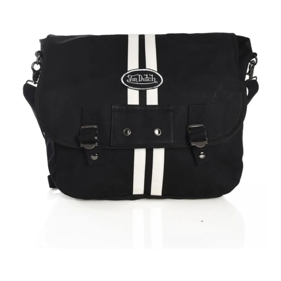 VON DUTCH JET Messenger Rugzak in het zwart. Voorzien van een afneembare, verstelbare schouderband, drukknoopsluiting en opgestikt logo. Afmetingen: Breedte 34 cm, Hoogte 30 cm, Diepte 13 cm. Gemaakt van katoen.