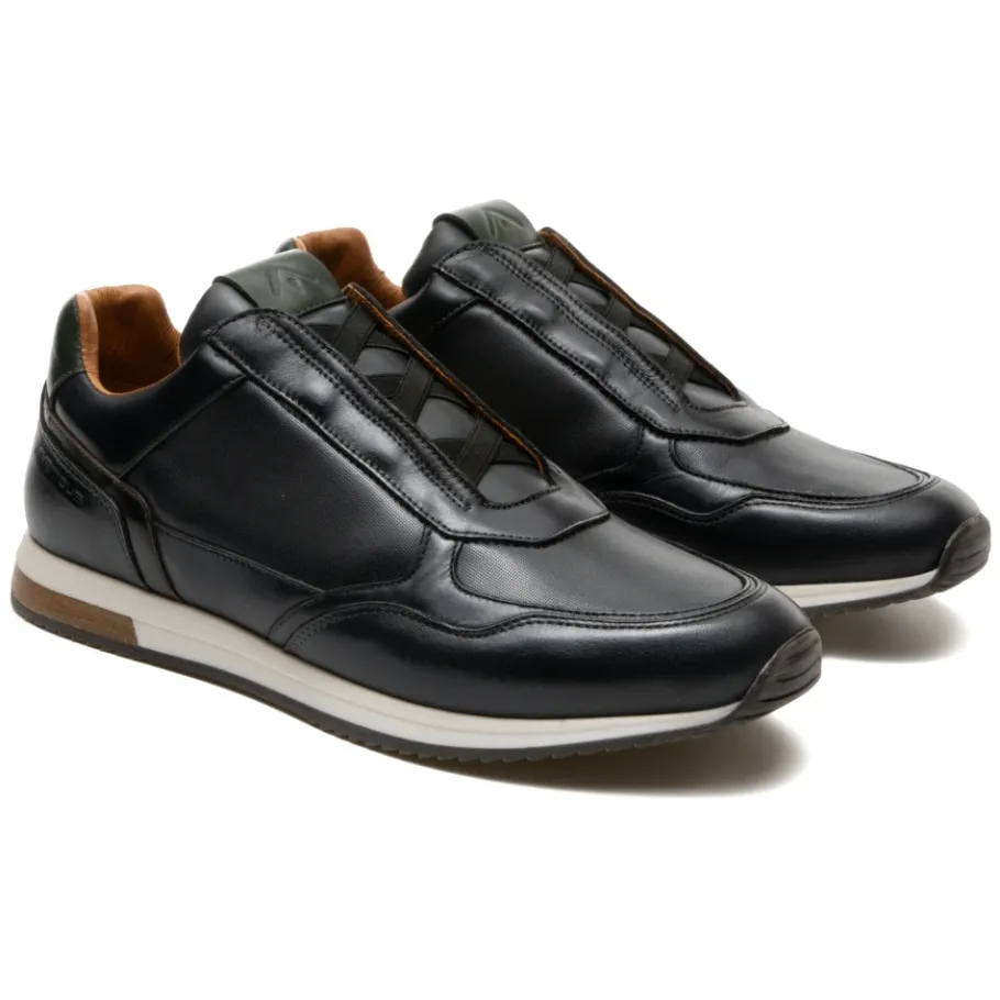 De ambitieuze SLOW Laceless Sneaker combineert een uniek sportief-casual silhouet met een gemakkelijk instapmodel zonder veters. Het is ontworpen voor dagelijks gebruik wanneer je het comfort van sneakers wilt met een meer ontspannen, verfijnde uitstraling. Belangrijkste kenmerken: Zwart | Antraciet combi | Leer | Instapmodel zonder veters | Elastische aantrekconstructie | Contrasterende panelen aan de zijkanten en hiel | Leren details op rubberen zool | Samenstelling & onderhoud: Bovenkant: leer | Voering: leer | Buitenzool: rubber