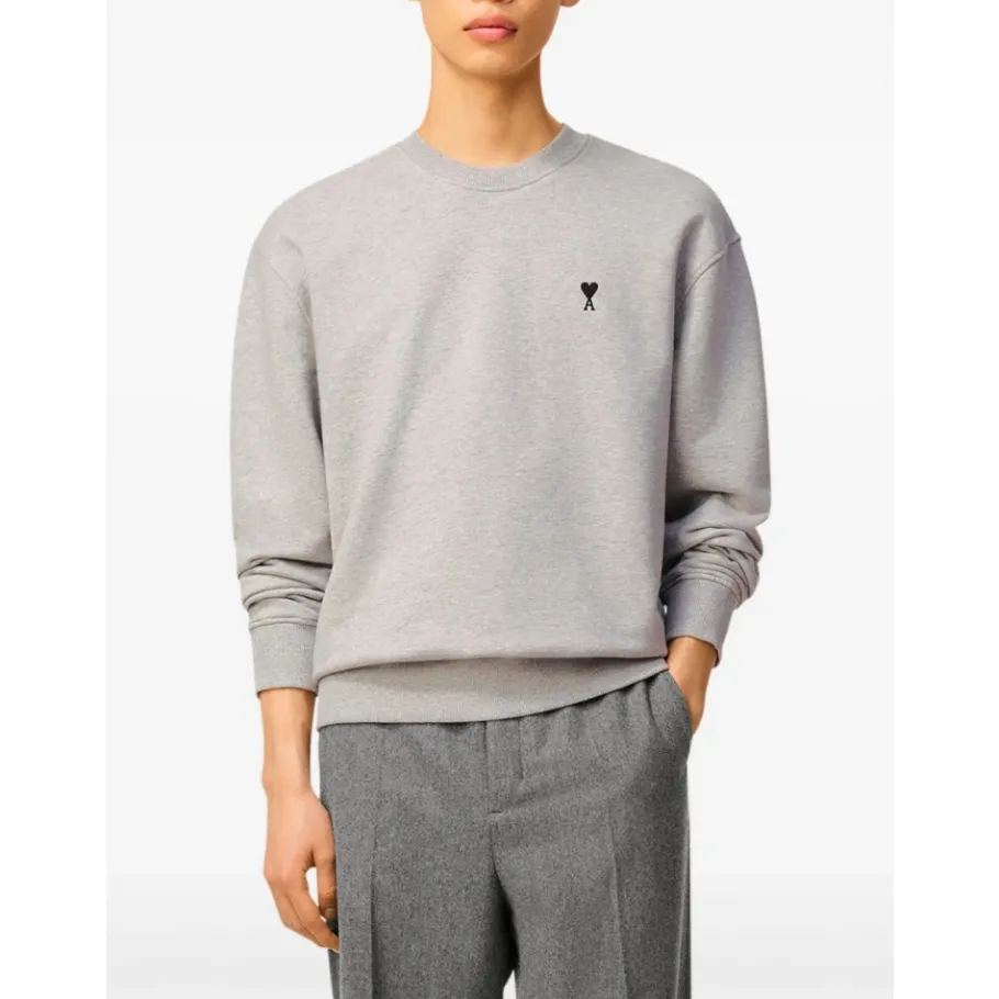 Upgrade je stijl met deze heather grey crew neck knitwear van Ami Paris. Met drop shoulders, lange mouwen en geribbelde manchetten en zoom, past dit stuk precies op maat. Model is 1,84 m / 6ft 1in lang en draagt maat M.