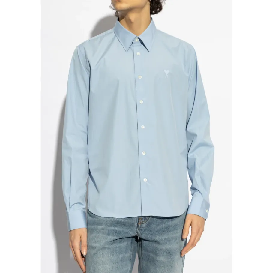 Ontdek het LOGO SHIRT van AMI ALEXANDRE MATTIUSSI, een veelzijdig kledingstuk perfect voor zowel casual als formele gelegenheden. De lichtblauwe tint voegt een vleugje elegantie toe, terwijl de hoogwaardige katoenen stof zorgt voor comfort. Belangrijkste kenmerken: Lichtblauw | Blauw | Katoen | Lange mouwen | Subtiele knopen | Geborduurd logo met hart en `A` op de borst | Afmetingen en pasvorm: Klassieke pasvorm | Samenstelling en onderhoud: 100% Katoen | Koud wassen in de machine, drogen op lage temperatuur