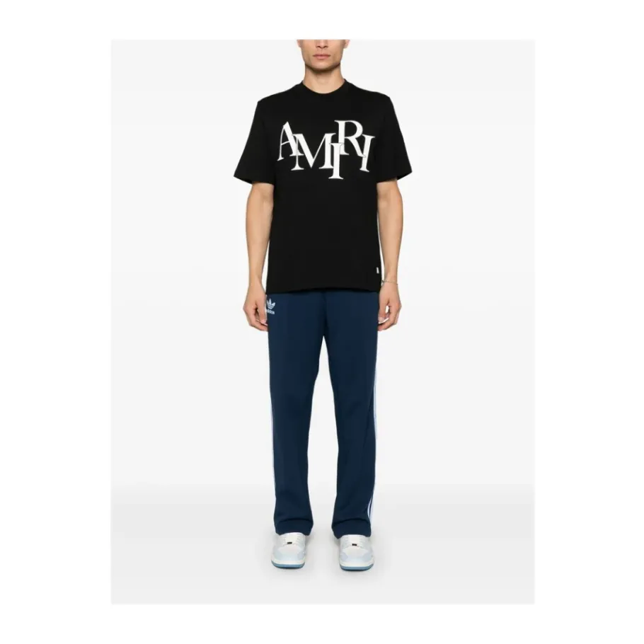 Upgrade je casual stijl met deze zwarte Amiri T-shirt met korte mouwen en een wit logo aan de voorkant. Gemaakt van 100% katoen, heeft een rechte pasvorm en een klassieke ronde hals.