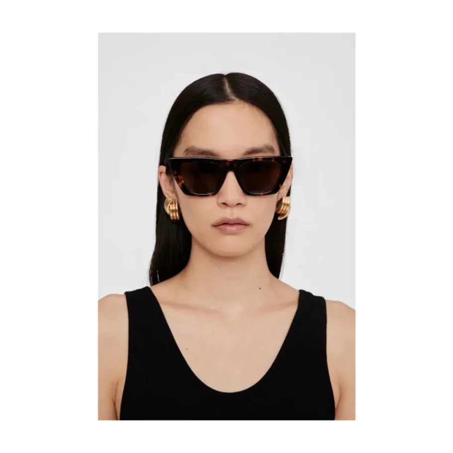Verhoog je stijl met de Paris zonnebril van Anine Bing, met een opvallend schildpadmontuur en bruine gepolariseerde lenzen. Belangrijkste kenmerken: Bruin | Acetaat | UV400 bescherming | Gouden logo op de linkerpoot | Hoekige vierkante vorm | Samenstelling en onderhoud: 100% acetaat | Reinig met een zachte doek.
