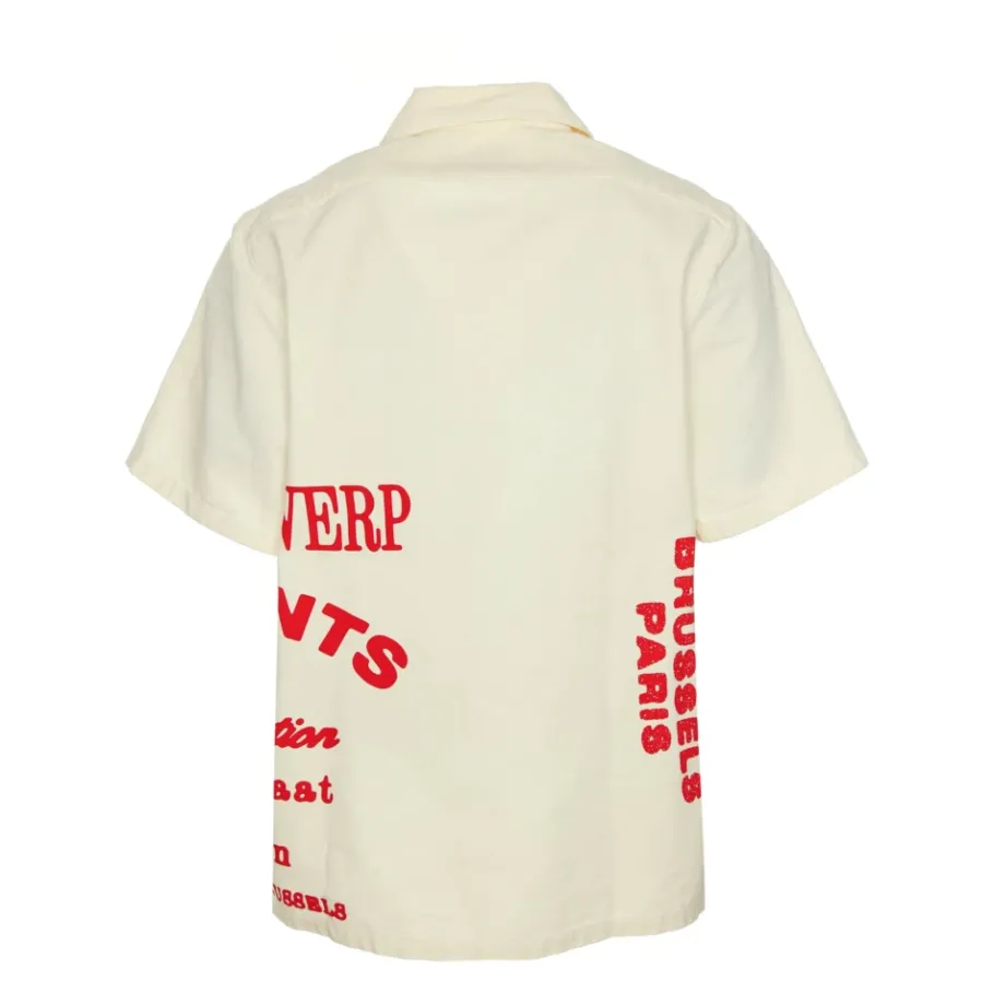 Kort overhemd met volledige knoopsluiting en rode printgrafiek van Arte Antwerp, voor mannen.