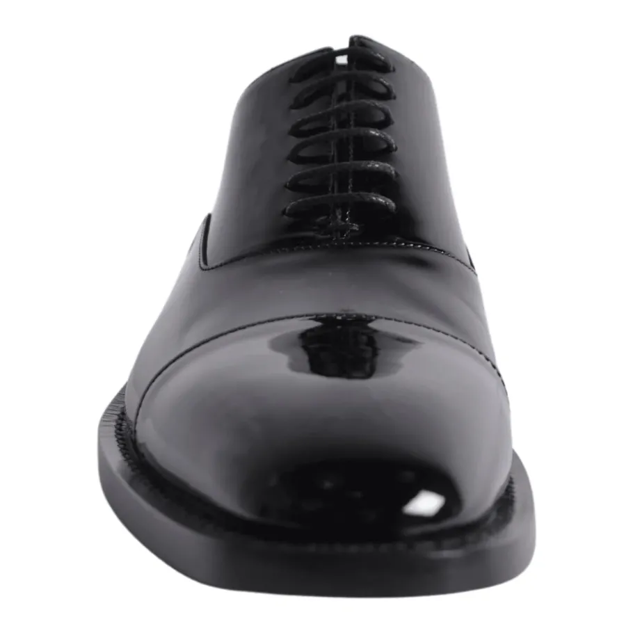 Balenciaga Derby in een gepolijste, gladde lakleren afwerking, die klassieke ronde neuslijnen combineert met een verfijnde vetersluiting. Ontworpen voor formele en smart-casual gelegenheden, met strakke stiksels en een fijne leren zool. Belangrijkste kenmerken: Zwart | Noir | Leer | Fijne leren zool | Vetersluiting | Ronde neus | Stikseldetails | 6-gaats vetersluiting | Samenstelling verzorging: Glad lakleer (bovenkant) | Leer (zool) | Leer (vetergaatjes)