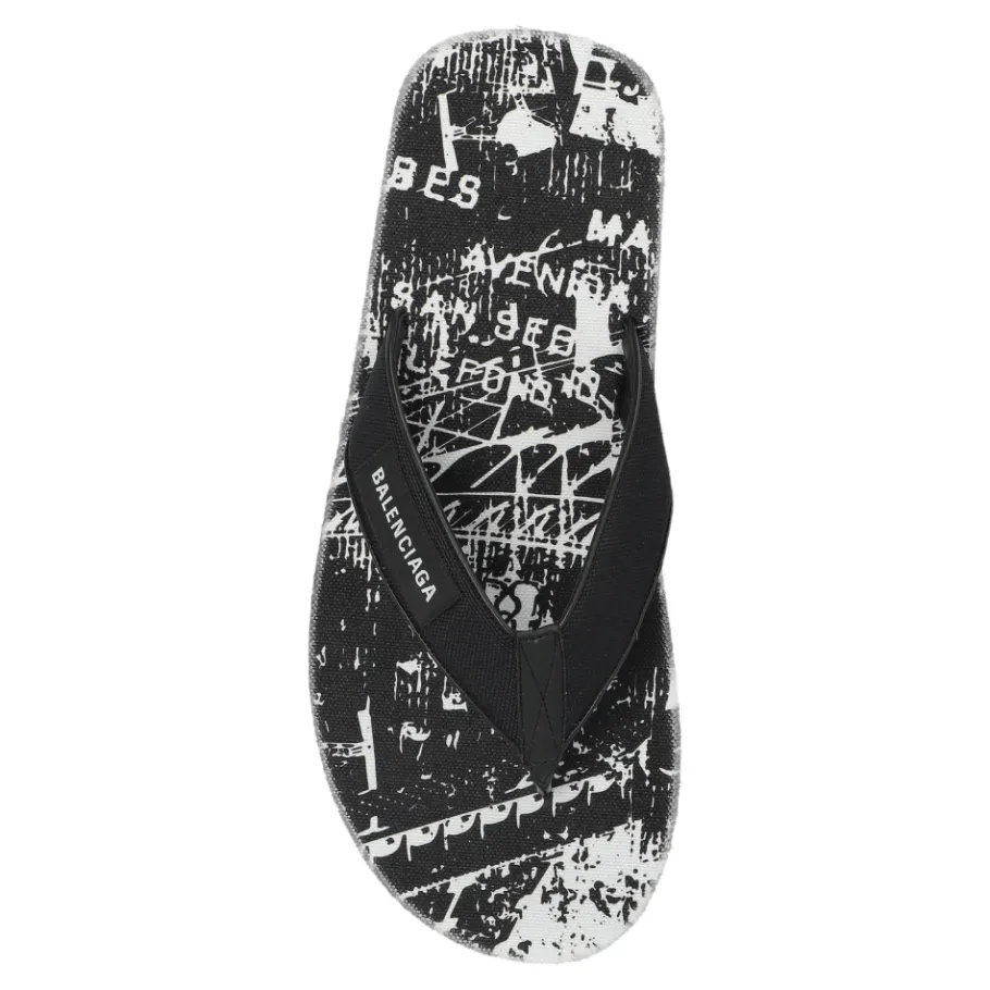 LOGO FLIP-FLOPS zijn een verfijnde interpretatie van zomerschoeisel voor mannen, die de essentie van de moderne ontwerpfilosofie van Balenciaga belichamen. De open constructie, kenmerkende Y-vormige banden en nauwkeurig vakmanschap met gebruik van hoogwaardig schuim en synthetische materialen zorgen voor uitzonderlijk comfort. De dubbellagige zool, versierd met een zwart-wit print die doet denken aan stedelijke graffiti, boeit met een subtiele zwart-wit accent aan de rand. De band heeft een gedurfd wit logo, een teken van prestige en exclusiviteit. Geïnspireerd door het meesterlijke vakmanschap van Cristóbal Balenciaga, combineert dit model succesvol traditie met de nieuwste trends en blijft het een onbetwist symbool van eigentijdse elegantie. WAAROM ZOU U DIT PRODUCT KOPEN? * Onderscheidend ontwerp ondertekend met het Balenciaga-logo * materialen en nauwgezet vakmanschap * Hoog draagcomfort tijdens zomerdagen * Unieke zool met een inspirerende grafische print * De perfecte combinatie van luxe en dagelijks comfort Zoolhoogte: 1,5 cm