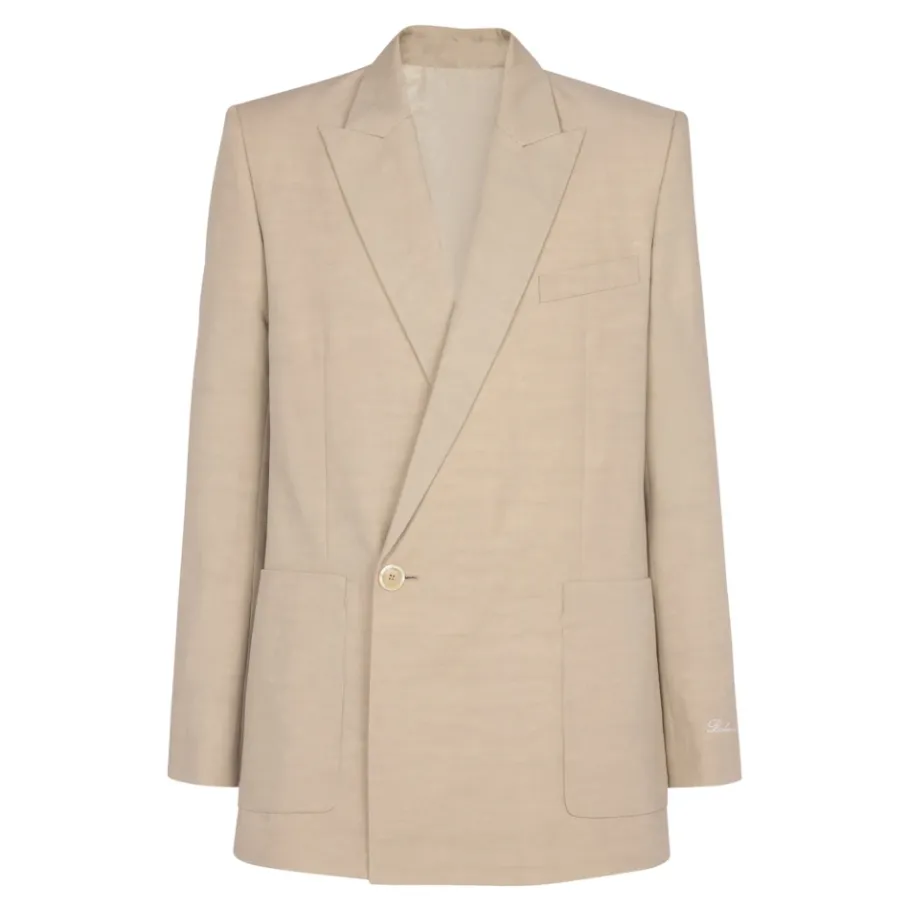 De Balmain 1-knoopsjas van soepel canvas combineert een gestructureerde pasvorm met een minimalistische sluiting voor een verfijnde, gelaagde look. Belangrijkste kenmerken: Beige | Viscose | Dubbele rij knopen met 2 gegraveerde hoornen knopen (1 binnenkant) | 2 opgestikte zakken aan de zijkant | 1 borstzak | 2 binnenzakken | Twill voering | Gestructureerde schouders | Italiaans getailleerde kraag | Lange mouwen | Rechte manchetten met 3 gegraveerde hoornen knopen | Toon-op-toon geborduurd Balmain Signature logo | Afmetingen en pasvorm: Model is 187 cm lang en draagt maat 48 | Rechte snit | Samenstelling en verzorging: 52% viscose | 48% katoen