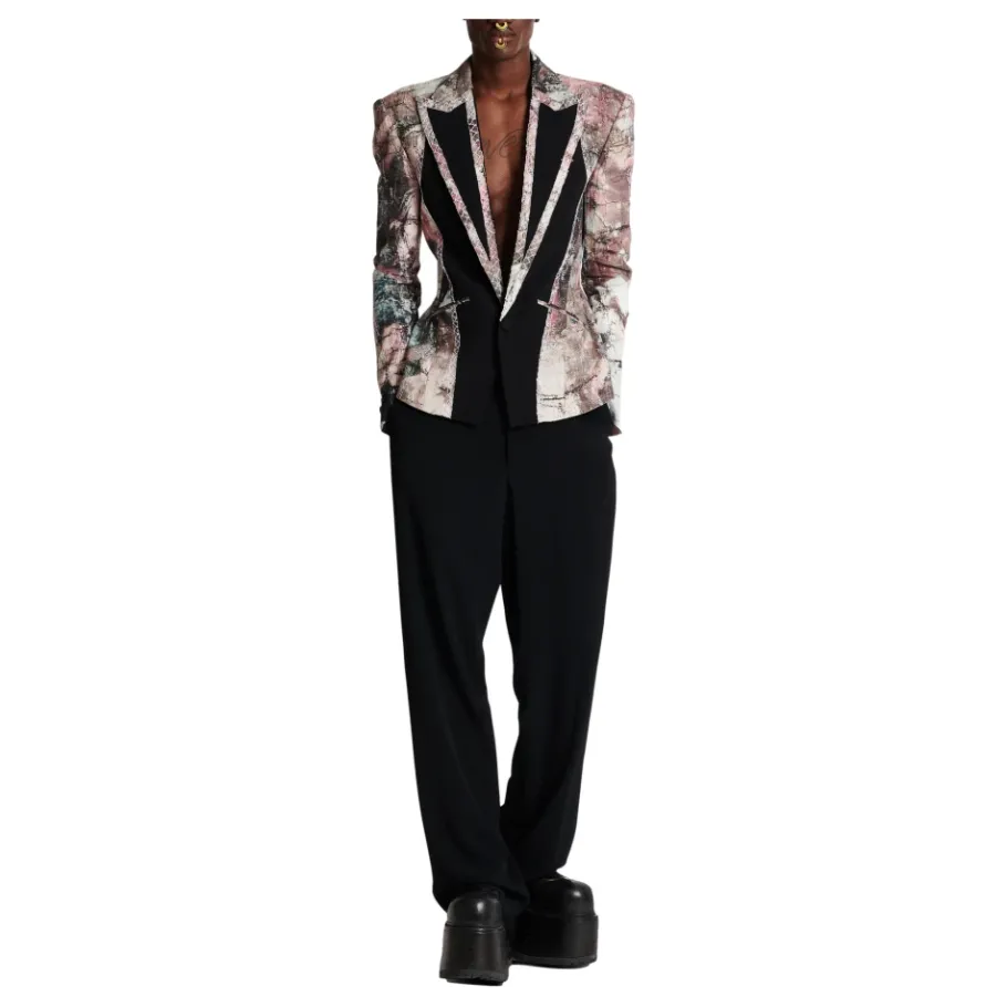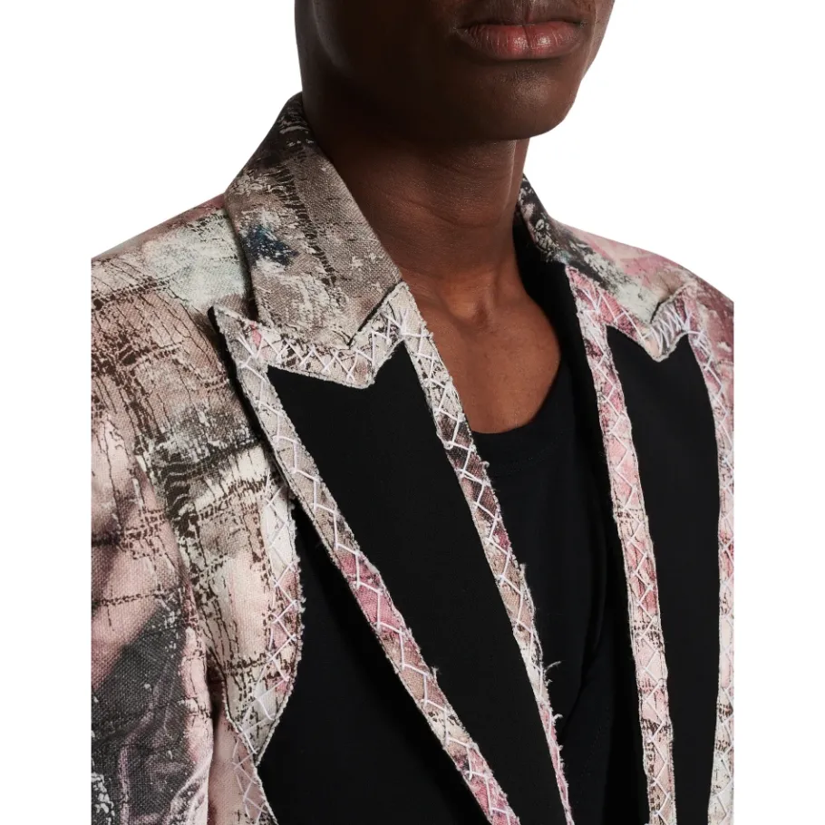 De Balmain Pastel Print Cut-Out Jacket combineert een getailleerde constructie met decoratieve details. Hij valt op door het gedrukte patroon en contrasterende crêpe inzetstukken aan de voorkant en de revers. Belangrijkste kenmerken: Multicolor | Linnen | Enkele knoopsluiting | Binnenzakken met knoop | Knoopsluiting aan de onderkant van de mouwen met drie knopen en decoratief knoopsgat | Bedekte knopen | Gedrukt patroon | Contrasterende crêpe inzetstukken aan de voorkant en de revers | Getailleerde kraag met brede, puntige revers afgezet met een jacquard rand met print | Traditioneel borduurwerk in getailleerde stijl en gerafelde afwerking | Epauletten op de schouders | Split aan de onderkant van de achterkant | Afmetingen en pasvorm: Model is 190 cm lang en draagt maat 48 | Samenstelling en verzorging: 100% linnen