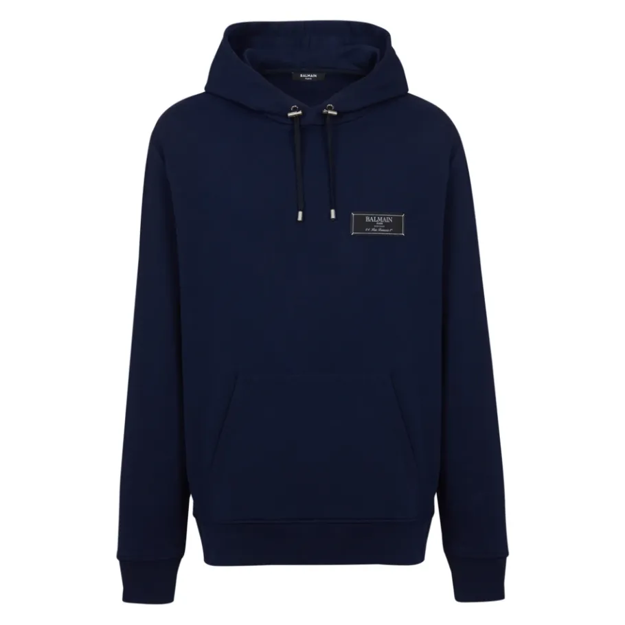 De Balmain Pierre hoodie is een relaxte katoenen hoodie die casual comfort combineert met verfijnde details. Ideaal om in laagjes te dragen, met kenmerkende logo-labels en gepolijste hardware voor een subtiele luxe look. Belangrijkste kenmerken: Blauw | Marineblauw | Katoen | Verstelbare capuchon met trekkoord | Kangoeroezak | Gegraveerde zilveren nestels, oogjes en stoppers | Ronde hals | Lange mouwen | Geweven label met Pierre Balmain-logo op de voorkant | Geribbelde randen | Afmetingen en pasvorm: Model is 189 cm lang en draagt maat M | Relaxte pasvorm | Samenstelling en onderhoud: 100% katoen | Machinewas koud op een fijnwasprogramma; binnenstebuiten wassen met soortgelijke kleuren. Niet bleken. Plat liggend laten drogen. Binnenstebuiten strijken op maximaal 110°C.