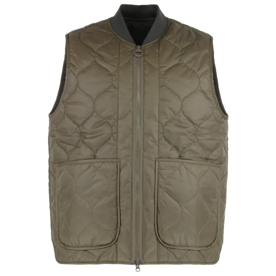 Barbour Gilet Re-Engineered Utility Liddesdale is een gewatteerd gilet voor het tussenseizoen dat klassieke onion quilting combineert met praktische opbergruimte voor dagelijks gebruik buitenshuis en gelaagde looks. Belangrijkste kenmerken: Donker olijfgroen | Polyamide | Matte ripstop afwerking | Comfortabele stofafwerking | Ritssluiting aan de voorkant met dubbele schuif | Grote opgestikte zakken aan de voorkant | Zak met ritssluiting op de mouw | Onion quilting | Mouwloos gilet silhouet | Opgestikte zakdetails | Afmetingen & pasvorm: Ruglengte: 70 cm | Relaxte pasvorm | Samenstelling & verzorging: Buitenkant: 100% Polyamide | Voering: 100% Polyester | Niet bleken. Apart wassen. Raadpleeg de instructies van de fabrikant.