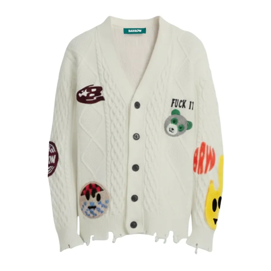 De Barrow Cardigan is een crèmekleurig gebreid kledingstuk, ontworpen om makkelijk in laagjes te dragen. Het werkt goed als een casual buitenlaag over T-shirts of shirts. Belangrijkste kenmerken: Beige | Crema | Crème | Knoopsluiting | Lange mouwen | Geribbelde randen