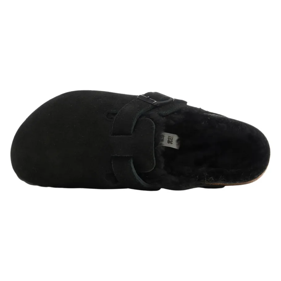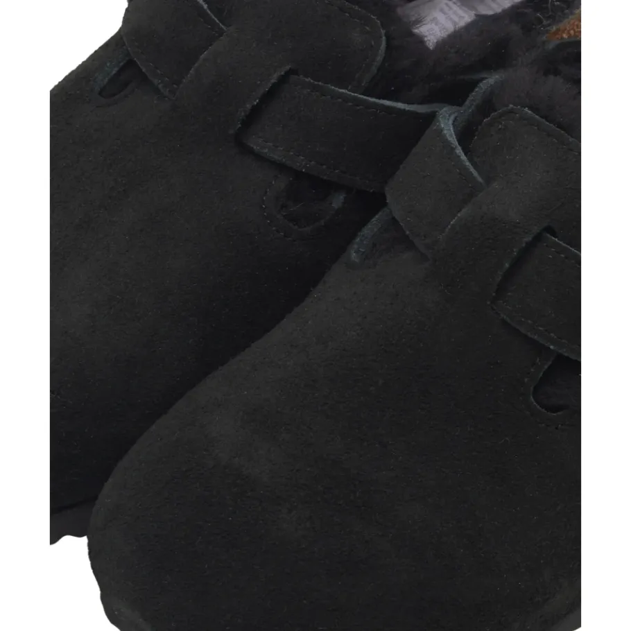 Ervaar ultiem comfort met de Boston Shearling Clogs van Birkenstock, met een pluche lamsvachten voetbed en een bovenwerk van suède voor een warme pasvorm. Belangrijkste kenmerken: Zwart | Suède | Verstelbare gespen van metaal | Lamsvachten voetbed | Anatomisch gevormd kurk en latex voetbed | Afmetingen en pasvorm: Smalle pasvorm | Samenstelling en onderhoud: Suède bovenwerk | Lamsvachten voetbed | EVA zool | Vermijd contact met water; reinig met een suède borstel.