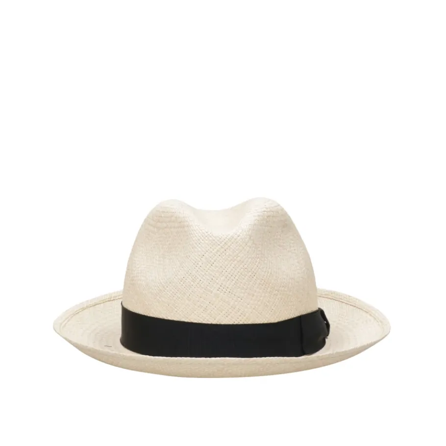 Upgrade je stijl met deze Borsalino strohoed met een Panama-patroon en een contrasterende hoofdband. Perfect voor de moderne man.