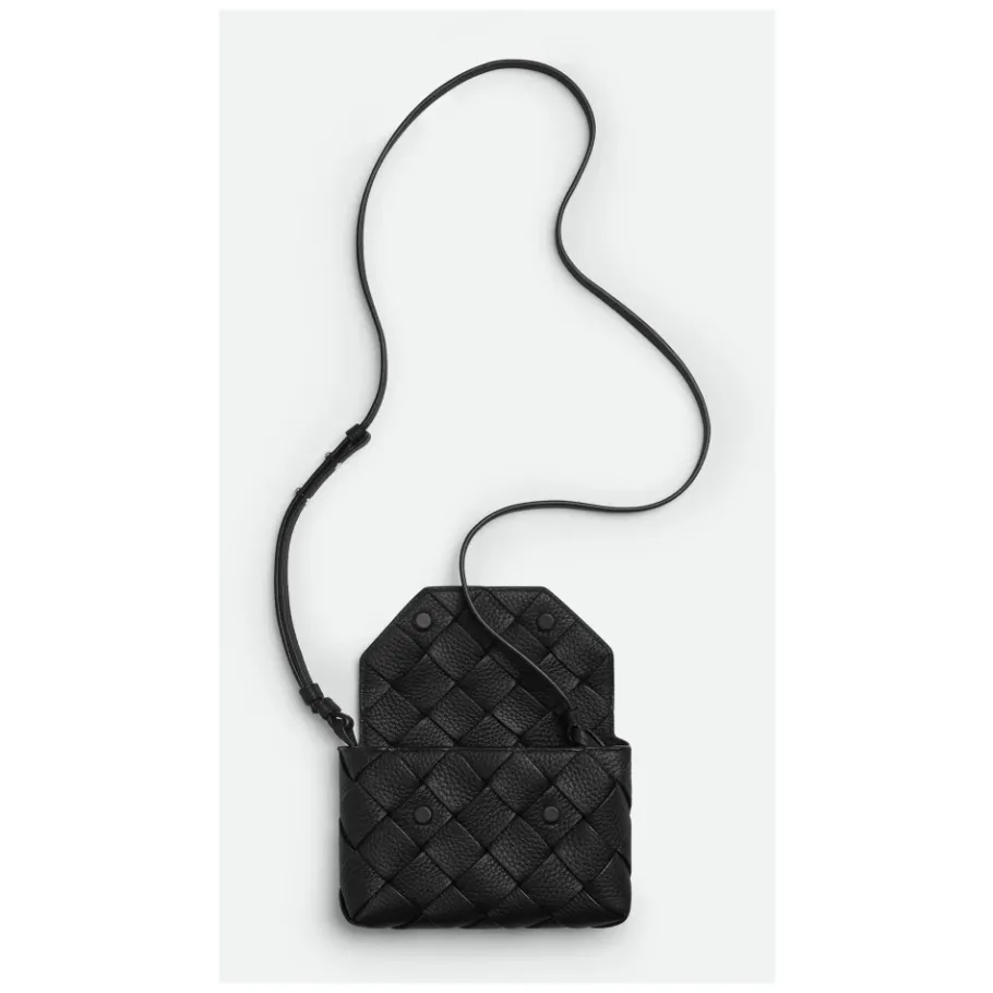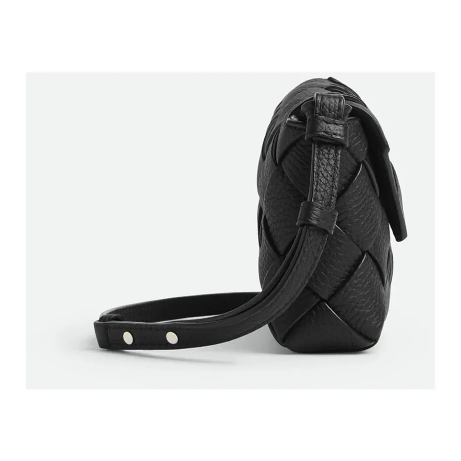 Deze crossbody tas van Bottega Veneta heeft een verfijnd ontwerp met geweven leer met textuur, perfect om elke outfit te upgraden. Belangrijkste kenmerken: Zwart | Kalfsleer | Verstelbare schouderband | Magnetische drukknoop sluiting onder klep | Binnenzak | Geweven leer met textuur | Samenstelling en onderhoud: 100% kalfsleer