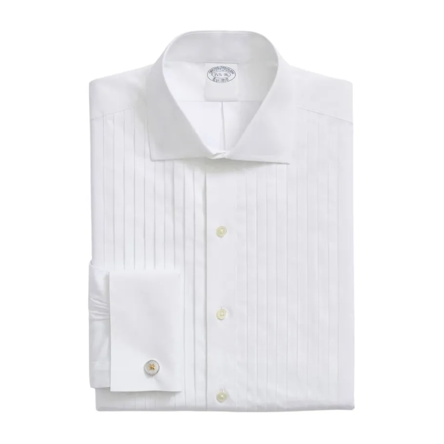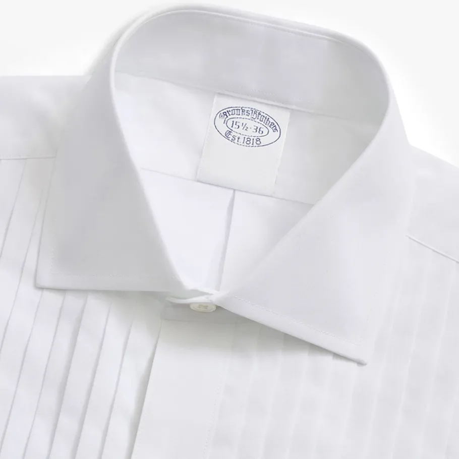 Brooks Brothers Plooi Katoenen Slim Fit Smokingoverhemd met Engelse Kraag-Heren Overhemden