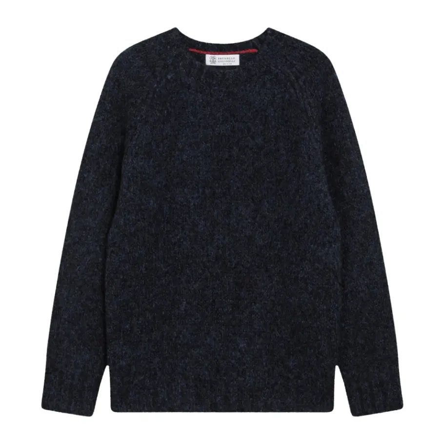 Brunello Cucinelli Gespikkelde Trui vervaardigd in een premium alpaca-, scheerwol- en kasjmiermix. Het lichte, gespikkelde garen en de raglanmouwen maken het ideaal als een verfijnd laagjeskledingstuk voor koelere dagen. Belangrijkste kenmerken: Marineblauw | Alpaca | Lichtgewicht | Warm | Zacht | Gelaagd | Ronde hals | Raglanmouwen | Geribde manchetten en onderband | Gespikkeld garen (gemêleerd effect) | Afmetingen & pasvorm: Regular fit | Samenstelling & verzorging: 78% Alpaca | 9% Nylon | 8% Scheerwol | 4% Kasjmier | 1% Zijde | Handwas alleen; niet bleken; plat drogen; niet in de droogtrommel; strijken op lage temperatuur; alternatief, delicate stomerij.