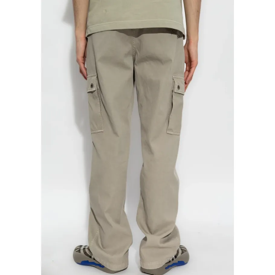 De Cotton Cargo Broek van Burberry combineert stijl en functionaliteit met een klassieke beige tint en katoenen constructie. Perfect voor casual uitstapjes, deze broek biedt comfort en een vleugje exclusiviteit met het subtiele designerlogo. Belangrijkste kenmerken: Beige | Katoen | Ruime klepzakken met drukknoopsluiting | Wijde pijpen | Subtiel designerlogo op de drukknoop | Afmetingen en pasvorm: Regular fit | Samenstelling en onderhoud: 100% katoen | Machinewas koud, droogtrommel laag