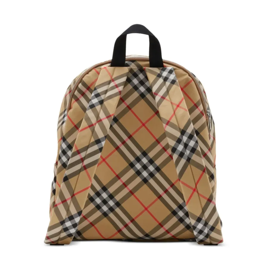 Upgrade je stijl met deze Burberry-rugzak met het iconische beige nova check-patroon en het kenmerkende Equestrian Knight-motief. Ontworpen voor mannen, het heeft een enkele bovenste handgreep, twee verstelbare schouderbanden en meerdere compartimenten voor eenvoudige organisatie. Gemaakt van een hoogwaardige polyester en polyurethaan mix, is deze rugzak zowel stijlvol als functioneel. Afmetingen: Diepte – 14,0 cm, Hoogte – 41,0 cm, Breedte – 35,0 cm.