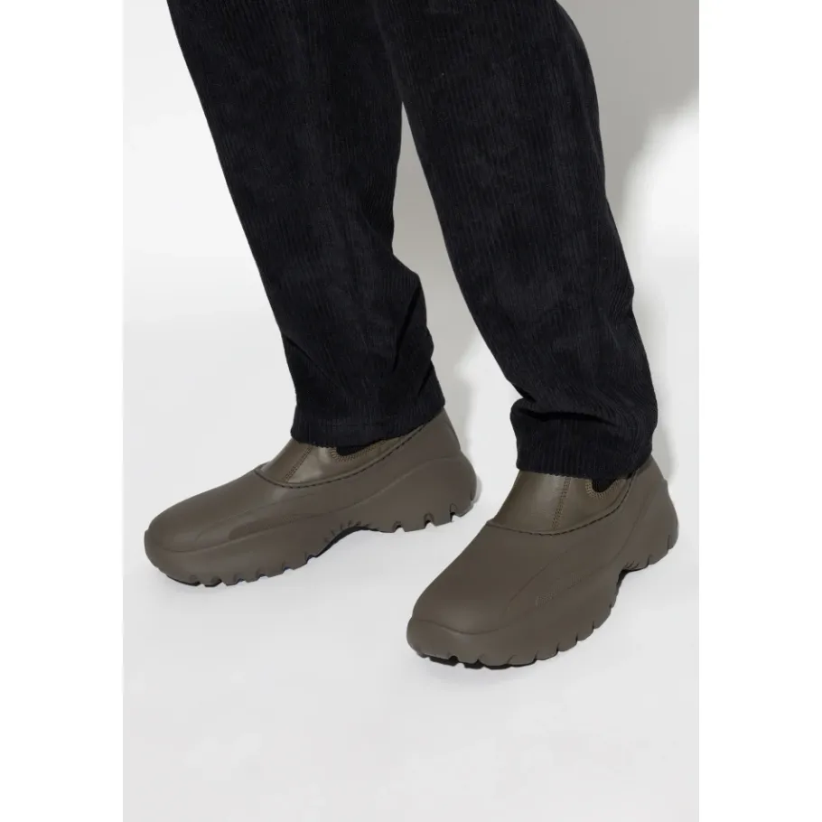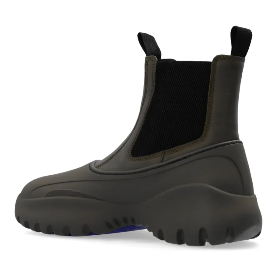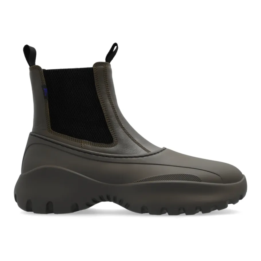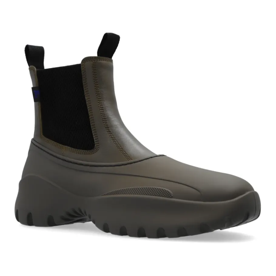 Ontdek de elegante Leren Enkellaarsjes van Burberry, met een modern sportief design en een stevige profielzool voor uitstekende grip. Belangrijkste kenmerken: Groen | Leer | Elastische inzetstukken voor gemakkelijk aantrekken | Stevige profielzool | Afgeronde voorkant | Zwarte treklipjes | Opvallend zij-inzetstuk | Samenstelling en onderhoud: 35% Kalfsnerfleer | 35% Kalfs Suède