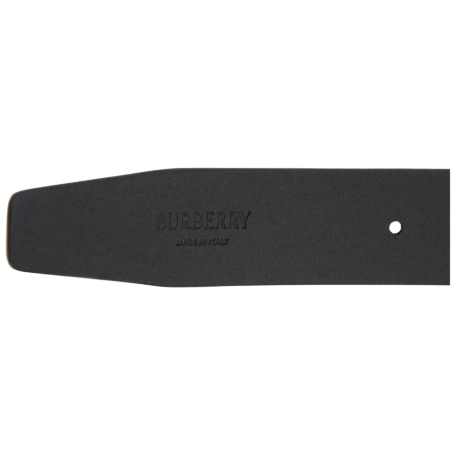 De Burberry leren riem combineert een korrelige buitenlaag met een gladde leren binnenvoering en een zilverkleurige metalen haak voor een verfijnd, verstelbaar accessoire. Belangrijkste kenmerken: Zwart | Nero | Leer | Verstelbare gesp | Zilverkleurige metalen haak | Korrelige buitenkant | Gladde binnenkant | Gespsluiting | Haak hardware detail | Gemaakt in Italië | Afmetingen & pasvorm: Hoogte (cm): 3 | Lengte (cm): 98(85), 99.5(90), 101(95), 102.5(100) | Samenstelling & onderhoud: Leer | Buitenkant: Korrelig leer | Binnenkant: Glad leer