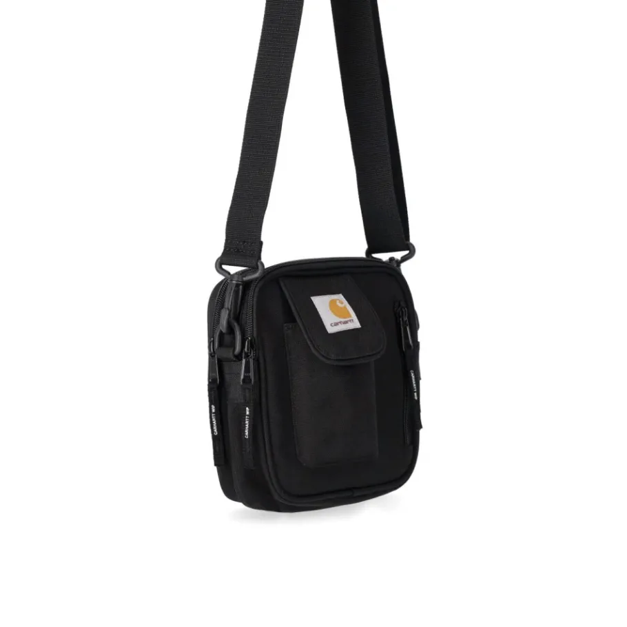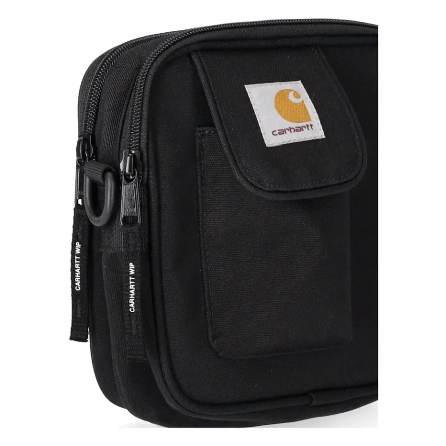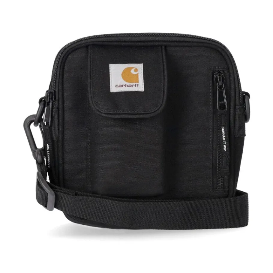Carhartt Wip Essentials crossbody tas in zwart polyester blend canvas. Waterdicht met twee ritssluitingen, een klittenbandzak en een ritszak aan de voorkant. Voorzien van iconisch logopatch, verstelbare en afneembare stoffen schouderband. Afmetingen: 17×16.5×6 cm. Samenstelling: 97% polyester, 3% polyurethaan.