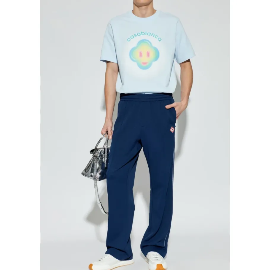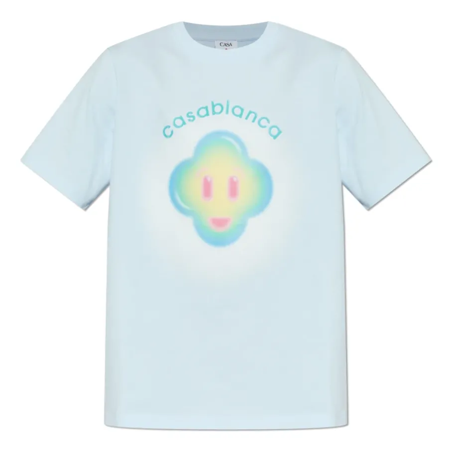 De Casablanca Airbrush Smiley T-Shirt combineert een klassieke ronde hals met een zachte, vage airbrush-print in lichtblauw voor een minimalistisch maar onderscheidend alledaags T-shirt. Belangrijkste kenmerken: Blauw | Lichtblauw | Katoen | Jersey van gemiddelde dikte | Lichte stretch | stof | Ronde hals | Korte mouwen | Airbrush-stijl vage print met ‘casablanca’ letters | Recht silhouet | Afgewerkte naden bij mouwen, halslijn en zoom | Gladde achterkant | Afmetingen & pasvorm: Lengte model: 193 cm | Borst: 95 cm | Taille: 82 cm | Heupen: 93 cm | Klassieke snit met een recht silhouet | Model draagt maat L | Samenstelling & verzorging: 100% katoen | Machinewas koud (30°C), fijne was.