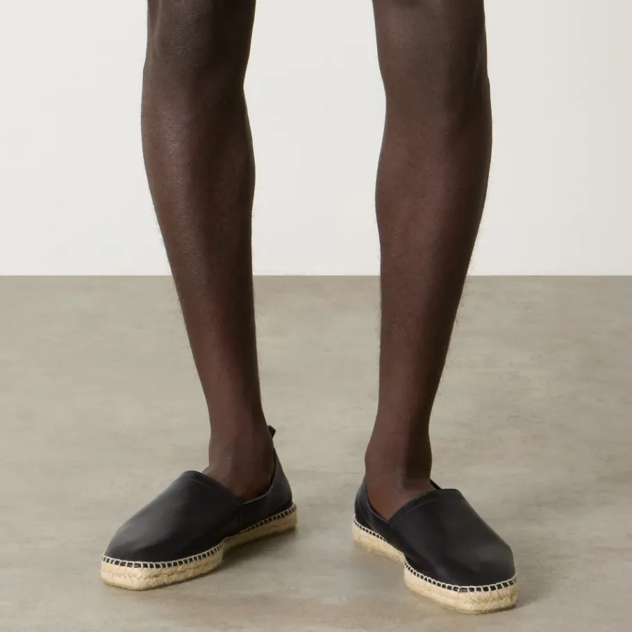 Castañer Pablo Espadrille — een iconische espadrille in campingstijl, vervaardigd van nappaleer met een gevlochten zool van jute. Ontworpen voor dagelijks gebruik bij warm weer, combineert casual comfort met handgemaakte details. Belangrijkste kenmerken: Zwart | Negro | Schapenleer | Instapmodel | Plat profiel | Handgestikte jute zool | Rubberen buitenzool voor duurzaamheid | Nappaleer bovenwerk | Gevlochten met jute omwikkelde zool | Espadrille silhouet in campingstijl | Afmetingen & pasvorm: Totale hoogte: 2 cm | Hakhoogte: 0 cm | Platform: 2 cm | Valt normaal qua maat | Samenstelling & onderhoud: Buitenkant: 100% schapenleer | Binnenkant: 100% schapenleer | Zool: Rubber | Verwijder stof met een zachte borstel. Reinig het leer met een licht vochtige doek of spons en droog met een schone doek. Breng indien nodig geschikte leerpoets of crème aan.