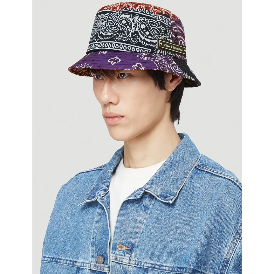 Ontdek de unieke 10.10 Bandana Bucket Hat van Children Of The Discordance, gemaakt van gerecyclede bandana’s met een stijlvol paisley-patroon. Deze moderne hoed heeft een paneelconstructie, logoplaquette, contraststiksels en is gemaakt van 100% katoenen stof.