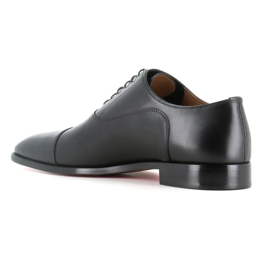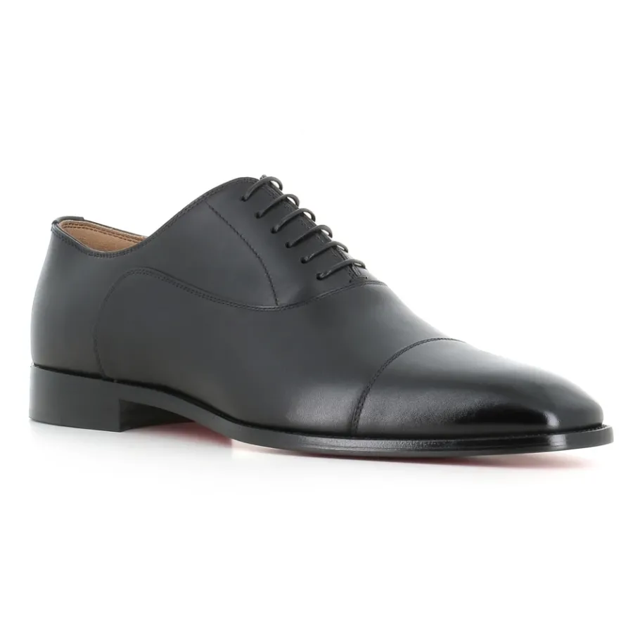De Christian Louboutin Greggory Flat combineert een taps toelopend Oxford-silhouet met een afwerking van kalfsleer met lak en grosgrain-bies – ideaal voor zakelijke en formele gelegenheden. Model bevestigd als Greggory; referentie van de ontwerper 3250066BK01. Belangrijkste kenmerken: Zwart | Kalfsleer met lak | Gesloten vetersluiting | Leren zool met ton-sur-ton rubberen inzetstuk | Gevoerde binnenkant | Taps toelopende vorm | Grosgrain-afwerking | Oxford vetersilhouet | Afmetingen en pasvorm: Hak: 2,5 cm | Valt normaal qua maat | Samenstelling en verzorging: Kalfsleer met lak | Leren zool | Afnemen met een zachte doek. Vermijd hitte en langdurige blootstelling aan vocht. Professionele leerreiniging aanbevolen.