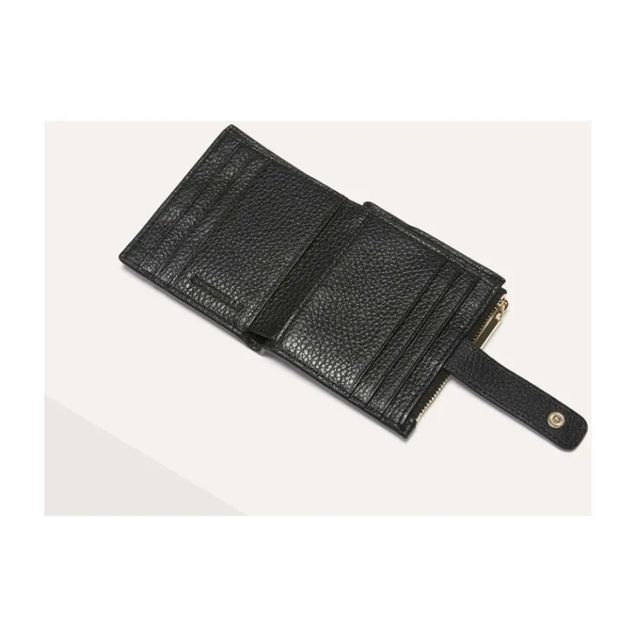 Ontdek de Coccinelle kleine leren portemonnee, een stijlvol accessoire vervaardigd van zwart leer met een veilige knoopsluiting. Ideaal voor het georganiseerd en stijlvol opbergen van je essentials. Belangrijkste kenmerken: Zwart | Leer | Knoopsluiting | Muntzakje met rits | Zes kaartsleuven | Samenstelling en onderhoud: Reinig met een vochtige doek.