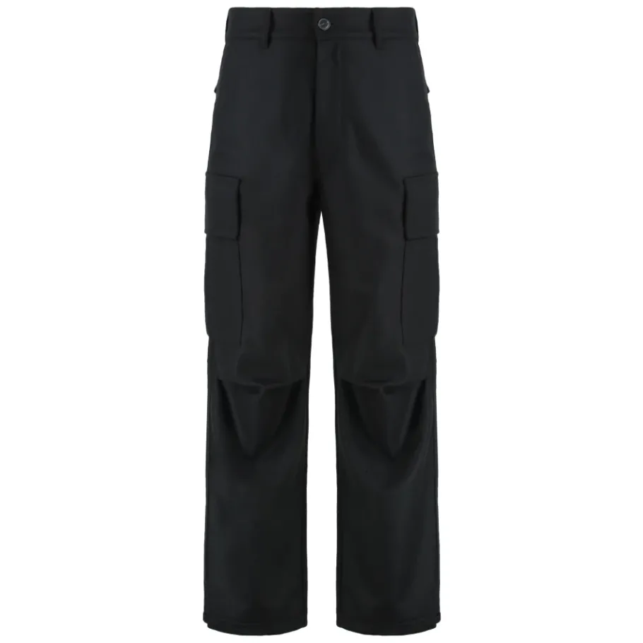 De DARKPARK Saint Cargo Pants combineren een wollen constructie met een cargo ontwerp met meerdere zakken, waardoor een , praktische broek ontstaat voor dagelijks gebruik en outdoor activiteiten. Belangrijkste kenmerken: Zwart | Virgin wool (scheerwol) | stof | Rits- en knoopsluiting | Meerdere zakken (zij- en cargozakken) | Aansnoerkoord in de zoom | Riemlussen | Gedeeltelijk gevoerd | Rechte snit | Plooidetails bij de knieën | Cargo styling met klepzakken | Afmetingen & pasvorm: Comfortabele pasvorm | Rechte snit voor bewegingsvrijheid | Samenstelling & onderhoud: 100% Virgin wool (scheerwol) | Voering: 65% Polyester, 35% Katoen | Raadpleeg de wasvoorschriften van de fabrikant.