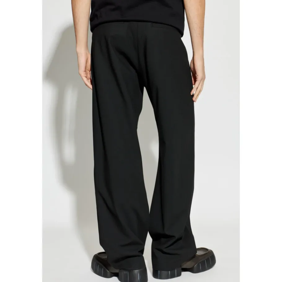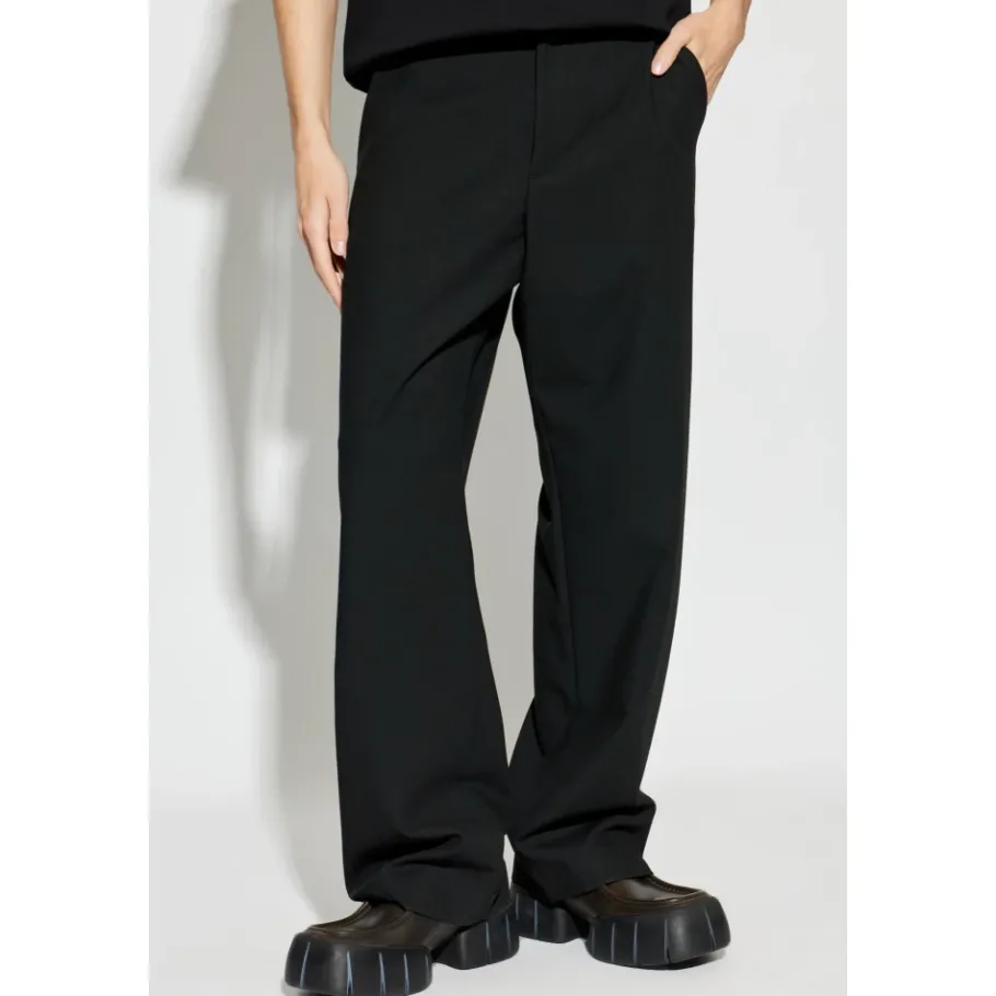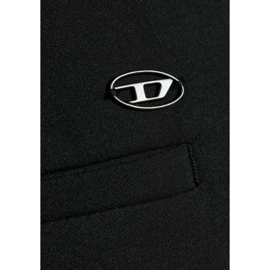 De Diesel Rechte Broek combineert verfijnde elegantie met een minimalistische, hoge taille. De gladde, matzwarte stof en een subtiel metalen logo op de voorzak maken ze geschikt voor zowel formele als alledaagse kleding. Belangrijkste kenmerken: Zwart | Dagelijks comfort | Riemlussen | Zijzakken | Afgewerkte manchetten | Simpele snit | Minimalistisch ontwerp | Subtiel metalen logo op de voorzak | Gladde, mat getextureerde stof | Perfect afgewerkte manchetten | Afmetingen en pasvorm: Lengte model: 193 cm | Borst model: 95 cm | Taille model: 82 cm | Heupen model: 93 cm | Model draagt maat: 50 | Rechte pasvorm | Hoge taille