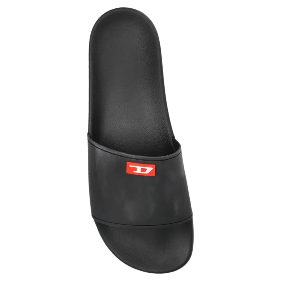 De Diesel Sa-Swim Slides bieden een minimalistisch slide silhouet met een voorgevormde zool, ontworpen voor dagelijks comfort en gebruik bij het zwembad. Belangrijkste kenmerken: Zwart | Rubber | Waterbestendig | | Gemakkelijk schoon te maken | Instapmodel | Voorgevormd voetbed voor ergonomische ondersteuning | Ergonomische zool voor een veilige pasvorm | Brede, stevige band | Voorgevormde, licht afgeronde zool | Rechthoekig rood logo op de band | Logo in reliëf op de zijkant van de zool | Minimalistisch, klassiek slide design | Afmetingen & pasvorm: Zoolhoogte op het hoogste punt: 2,5 cm | Samenstelling & onderhoud: Rubber | Afnemen met een doek.