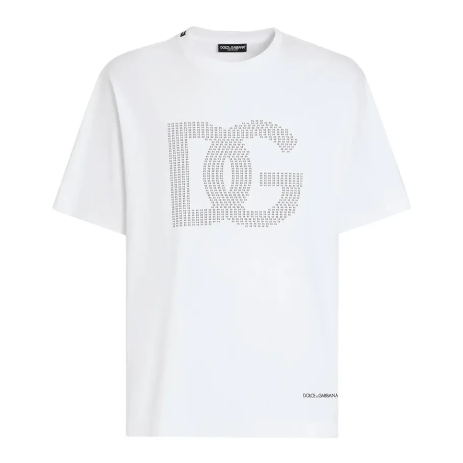 Het Dolce & Gabbana katoenen T-shirt met logo is een kenmerkend wit T-shirt met ronde hals dat klassiek maatwerk combineert met een opvallend DG-logo voor een verfijnde casual look. Gemaakt van zachte katoenen jersey, ideaal voor alledaagse styling of gelaagde looks. Belangrijkste kenmerken: Wit | Alb | Katoen | Geribbelde ronde hals | Ronde hals | Korte mouwen | DG-logo op de voorkant | Afmetingen en pasvorm: 73 cm vanaf de schoudernaad bij maat IT 48 | Normale pasvorm | Samenstelling en verzorging: 100% katoen