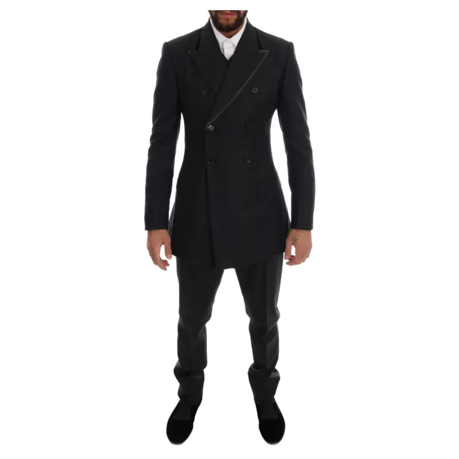 Dolce & Gabbana Elegant Grijs Wol Double Breasted Pak-Heren Kostuums