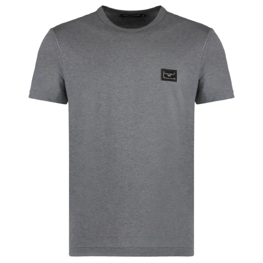 Het Dolce & Gabbana katoenen T-shirt met ronde hals combineert een klassiek silhouet met een geribbelde halslijn en een metalen logoplaat voor een strak, alledaags T-shirt. Ontworpen voor comfortabel dragen, geschikt voor casual laagjes en basis kledingstukken. Belangrijkste kenmerken: Grijs | Katoen | Ademende stof | Lichtgewicht | Geribbelde halslijn | Ronde hals | Korte mouwen | Metalen logoplaat op de borst | Afmetingen & pasvorm: Regular fit | Valt normaal qua maat | Samenstelling & onderhoud: 100% Katoen | Machinewas op 40° C.