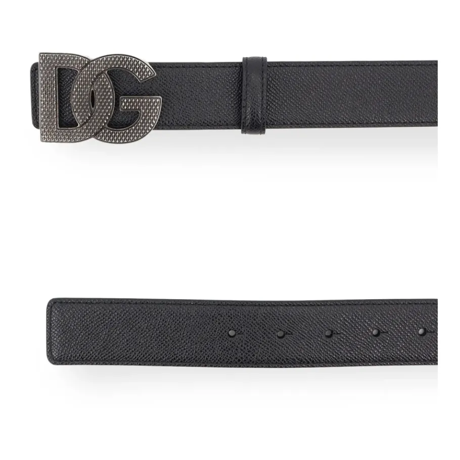 De Dolce & Gabbana Reversible Logo Riem is een verfijnd accessoire van kalfsleer, ontworpen voor veelzijdige styling. Hij valt op door de metalen gesp met het DG-logo en een omkeerbare riem voor twee looks. Belangrijkste kenmerken: Zwart | Kalfsleer | Verstelbare sluiting | Riemlussluiting | Drukknoopsluiting onder de gesp | Omkeerbare riem | DG-logo metalen gesp | Leren lus | Afmetingen & pasvorm: Hoogte: 3,5 cm | Verstelbare pasvorm | Samenstelling & onderhoud: 100% kalfsleer | Niet wassen. Afnemen met een zachte, droge doek.
