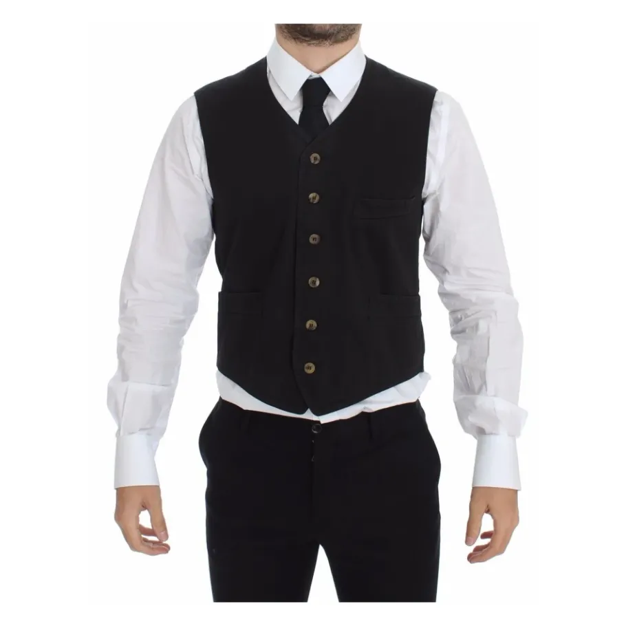 Upgrade je formele look met deze Dolce & Gabbana Vest. Gemaakt van 100% authentiek katoen, deze zwarte Dress Vest heeft een enkele rij knopen model met een verstelbare tailleband aan de achterkant. Gemaakt in Italië, het beschikt over een volledige knoopsluiting aan de voorkant en kenmerkende logo details uit de MainLine collectie.