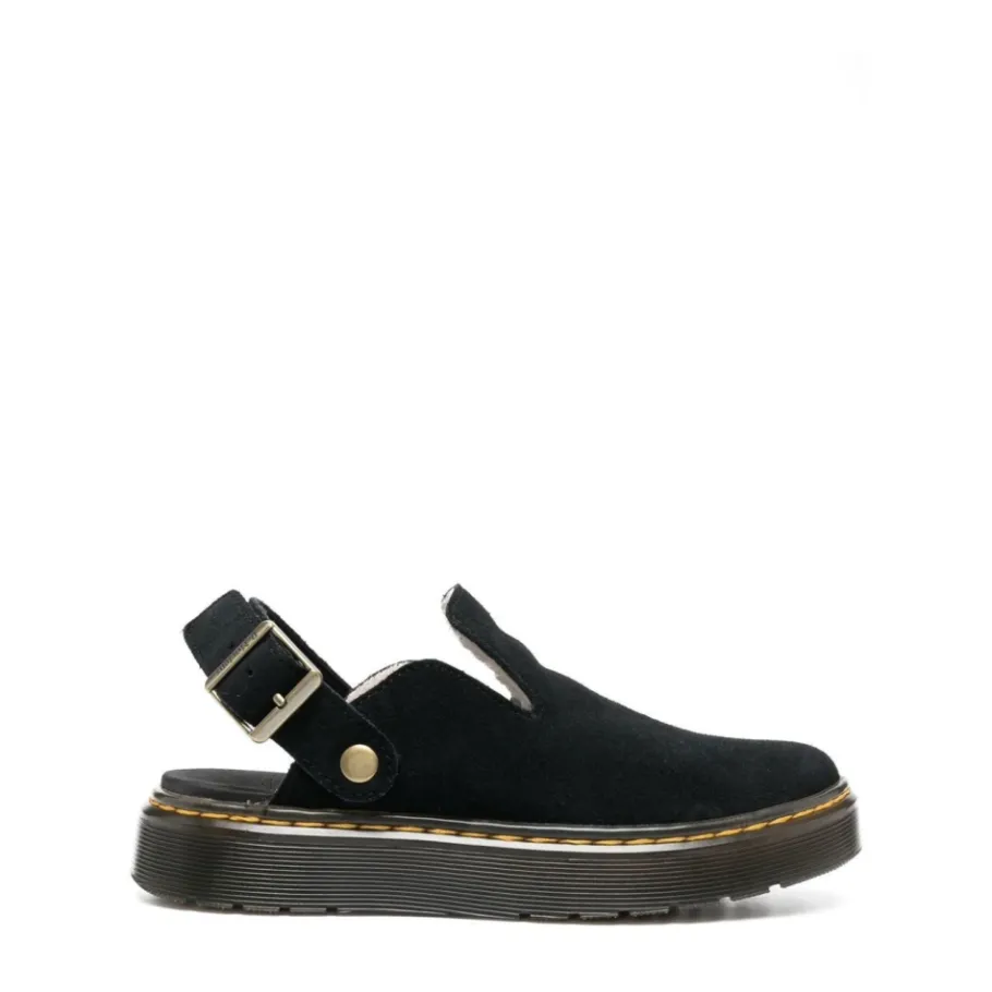Stap vol vertrouwen naar buiten met de Dr. Martens Carlson Muiltjes, ontworpen met een strakke zwarte suède bovenkant en een rubberen zool voor dagelijks gebruik. Belangrijkste kenmerken: Zwart | Suède | Logo detail |