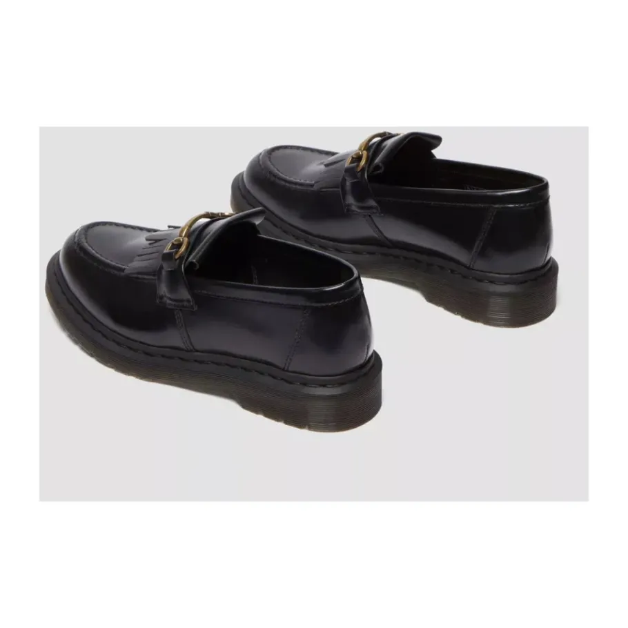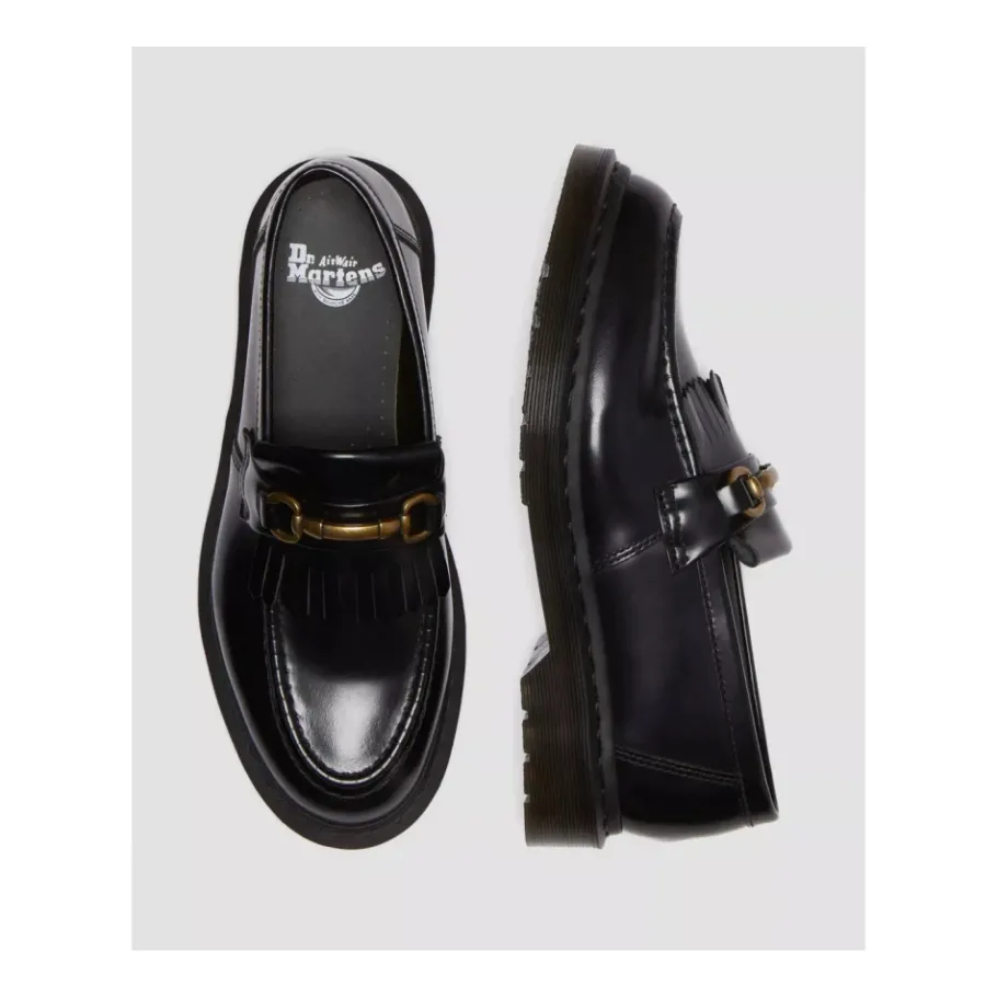 Geef je stijl een boost met deze Adrian Snaffle loafers van Dr. Martens, met een strak design met franjes en de kenmerkende AirWair™ zool voor verbeterde duurzaamheid en slipweerstand. Belangrijkste kenmerken: Zwart | 100% Leer | Oliebestendigheid | Slipweerstand | Goodyear-welted constructie | Franjes | Gepolijste afwerking | Afmetingen en pasvorm: Normale pasvorm | Samenstelling en onderhoud: 100% Leer | 67% Textiel | 35% Leer | 100% PVC | Reinig met een vochtige doek.