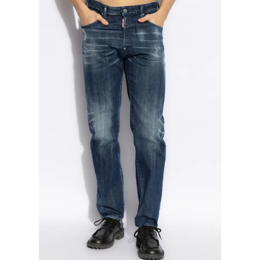 Maak kennis met de 642 jeans van Dsquared2, een stijlvolle mix van Amerikaanse glamour en Italiaanse chic, ontworpen door de broers Caten. Deze marineblauwe jeans heeft een subtiel distressed effect voor een moderne, licht gedragen look, gemaakt van stretch denim voor comfort en een flatterende pasvorm. Belangrijkste kenmerken: Marineblauw | Blauw | Stretch Denim | Carrot fit model | Vijf-pocket layout | Subtiele slijtageplekken | Rode patch met merknaam | Afmetingen en pasvorm: Carrot fit |