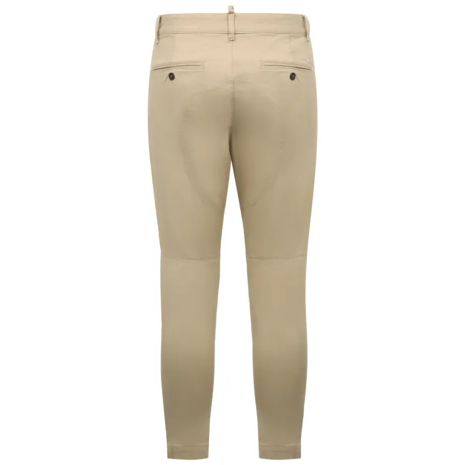 Dsquared2 Chino Pant in Beige — stretch chino trousers die een getailleerd silhouet combineren met dagelijks comfort, geschikt voor smart-casual en werkklare outfits. Belangrijkste kenmerken: Beige | Chino katoen | Stretchstof voor extra comfort | Ademend katoen | Twee achterzakken met knoop | Zijsplitzakken | Knoop- en ritssluiting | Riemlussen | Mid-rise taille | Taps toelopende pijp | Strakke voorkant met tailleband met één knoop | Logobadge op de achterkant | Afmetingen en pasvorm: Slim fit | Samenstelling en verzorging: 97% katoen, 3% elastaan | Machinewas koud, fijne was; niet bleken; droogtrommel laag of hangend drogen; warm strijken indien nodig.